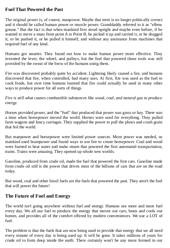 every day. We all use fuel to produce the energy that moves our cars, heats and cools our