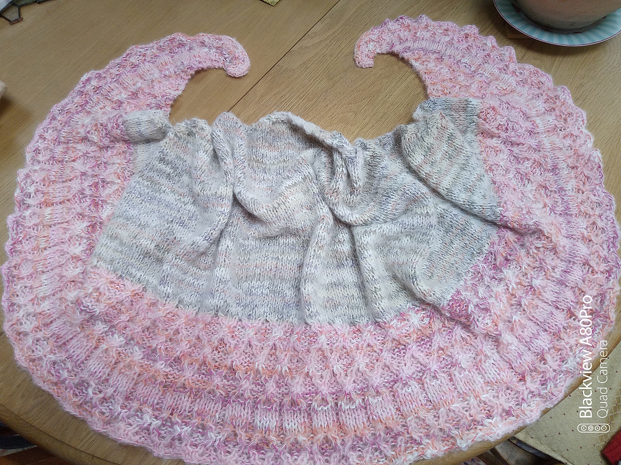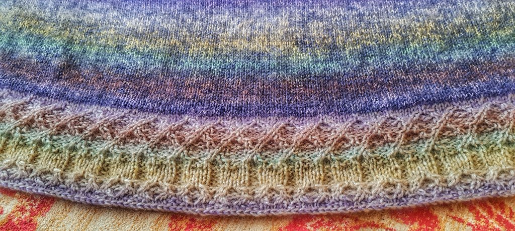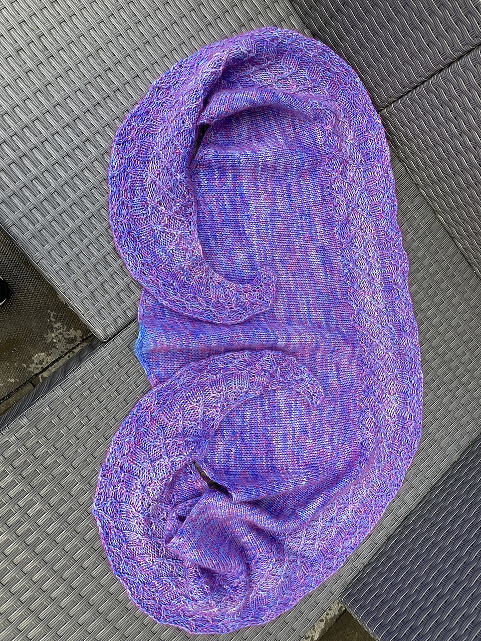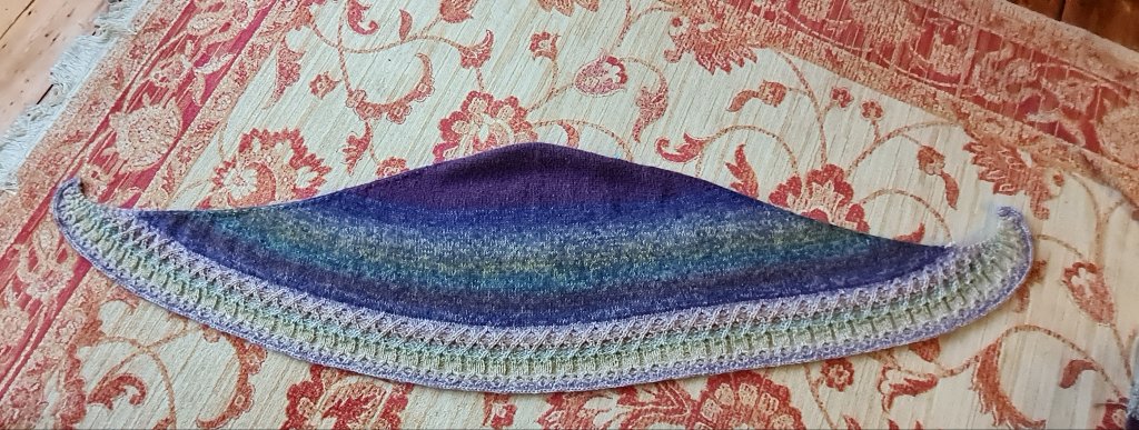 It’s crescent shaped, with increases on each row, and has a border which is charted and