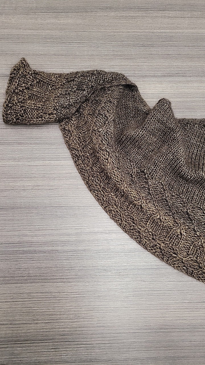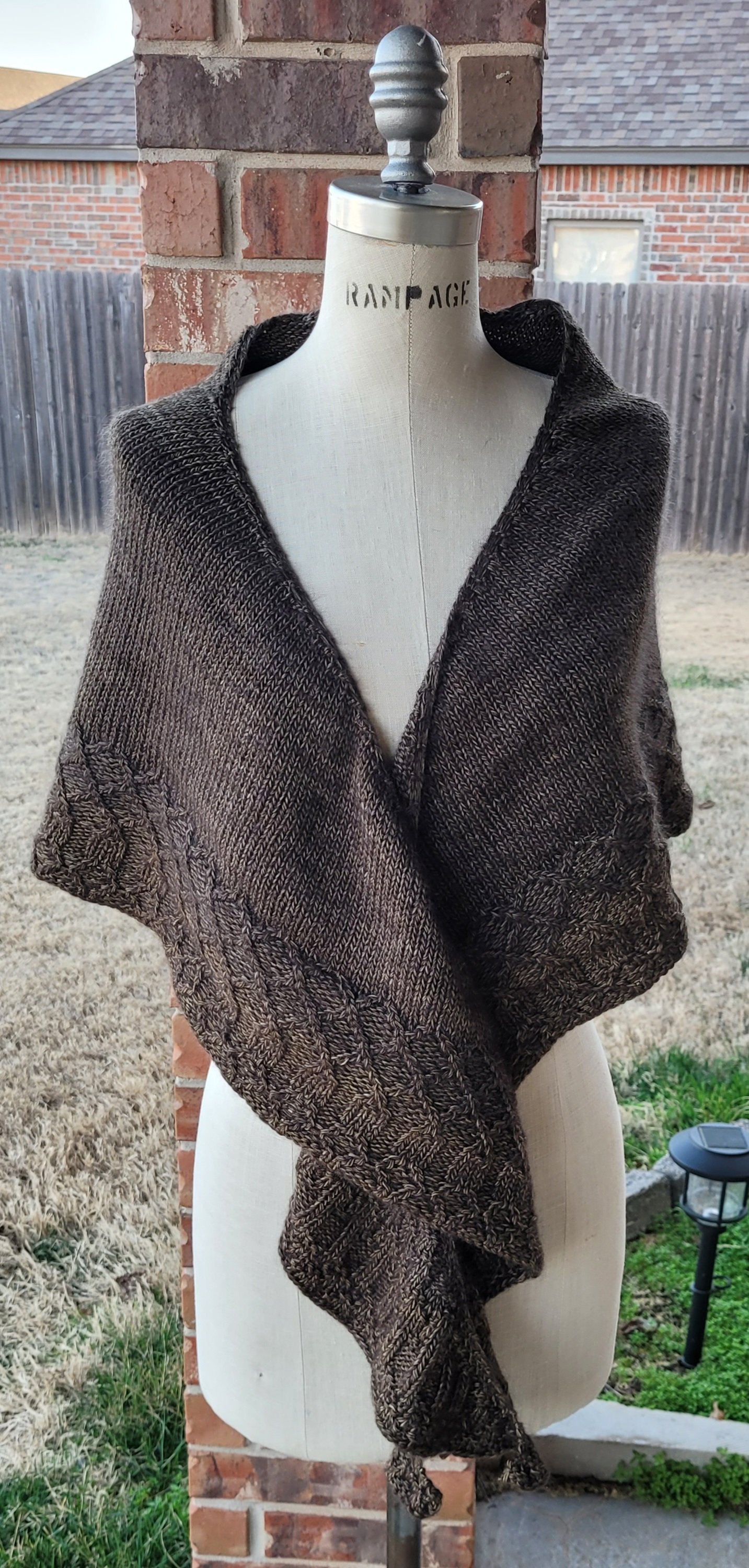 Marisa made the sample in a rich brown shade used MT merino light and Shibui cloud.