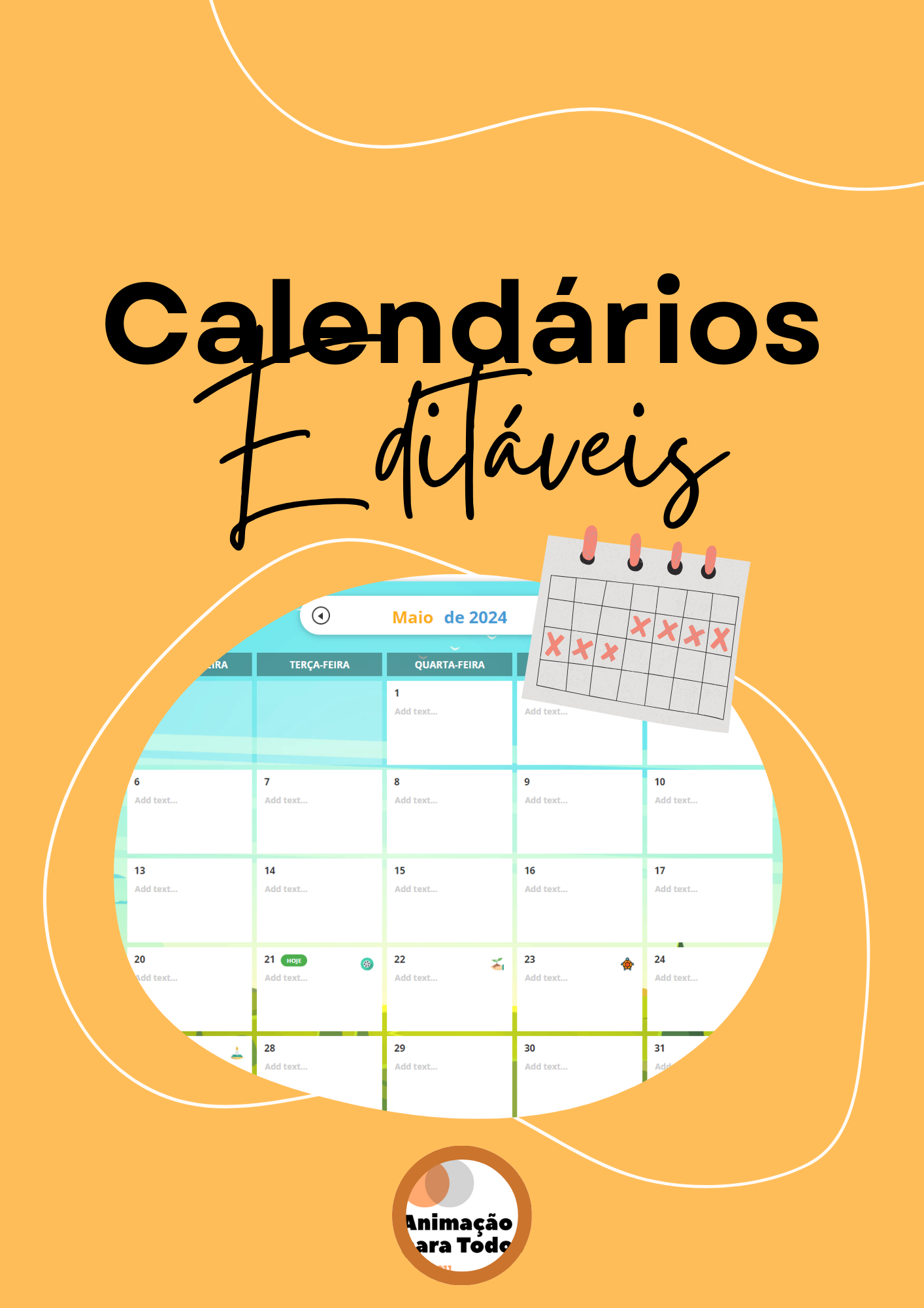 Com estes calendários podes adicionar texto, atribuir atividades a datas, adicionar ícones, personalizar conforme as tuas necessidades.