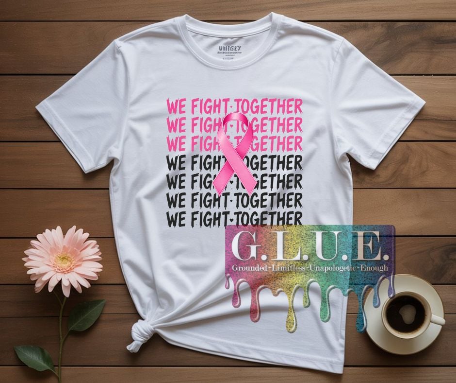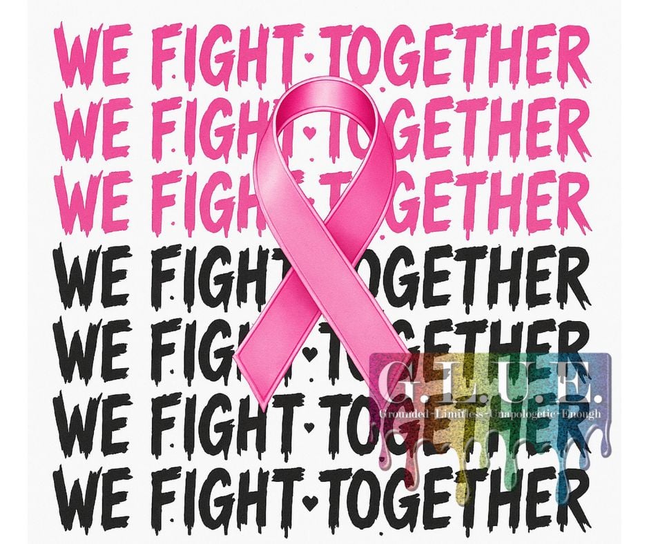We Fight Together Breast Cancer Awareness PNG | Dripping Pink Ribbon Sublimation | Empowerment Shirt Design for October Awareness Month