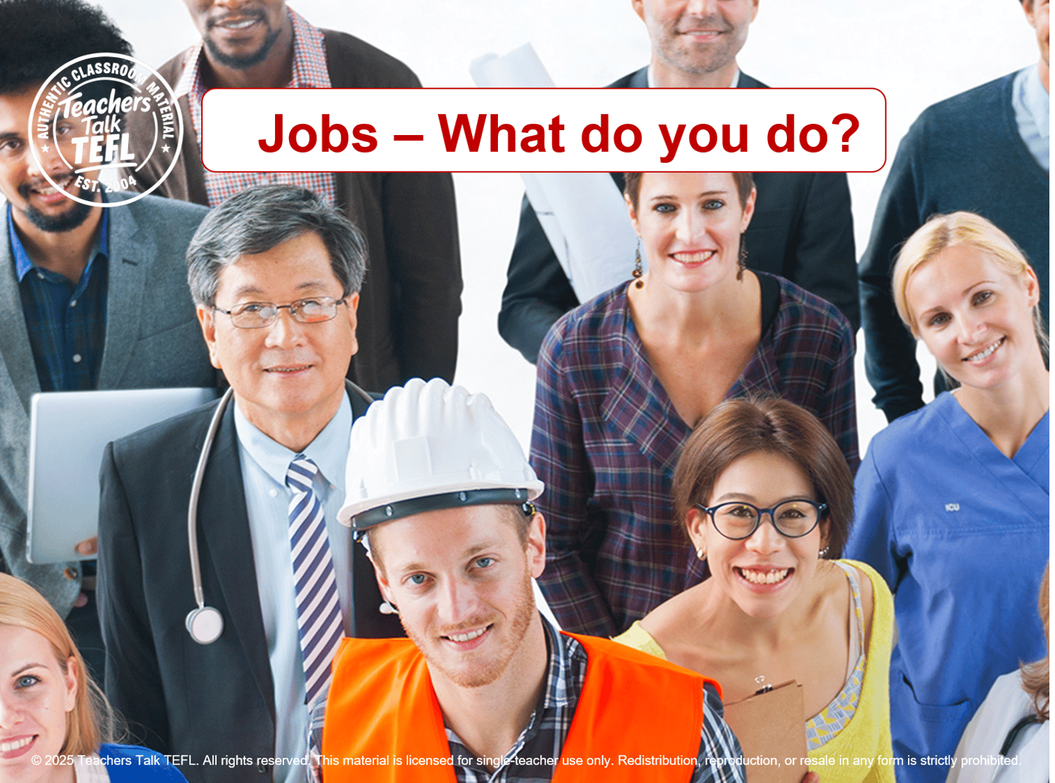 - A1 learners: Use the visual slides for simple vocabulary practice, drilling, and basic Q&A. Focus on core jobs and easy sentence patterns.