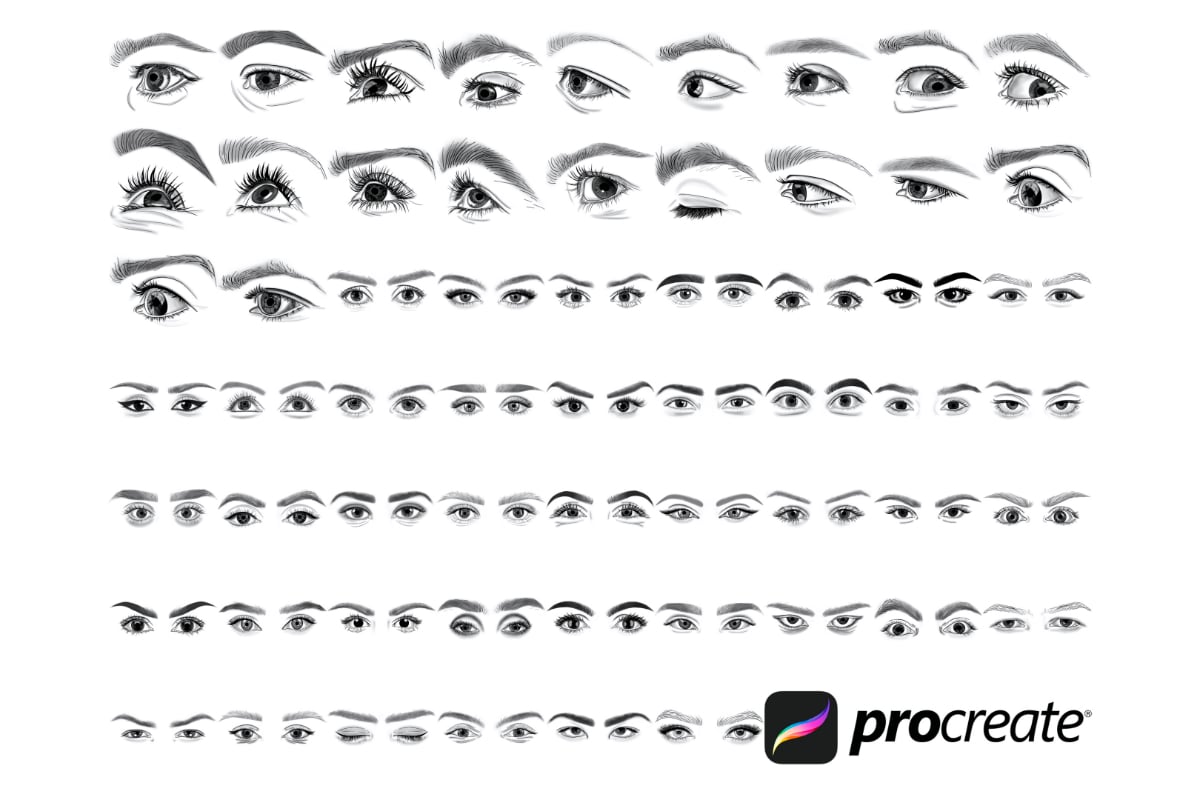 Facial Eyes Set 3 Procreate Brush Stamps, 60 Eyes