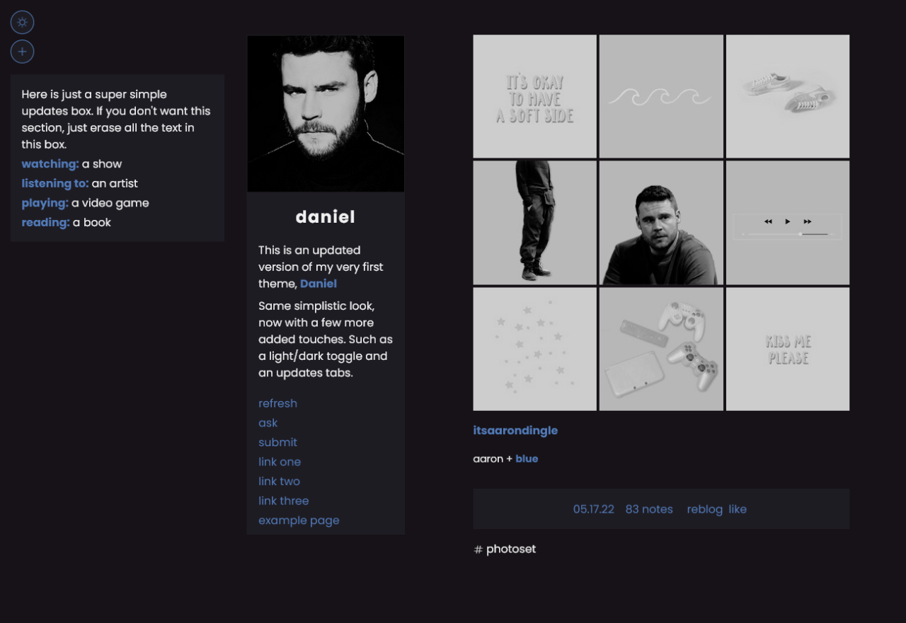 - three custom sidebar links, as well as endless with tumblr pages