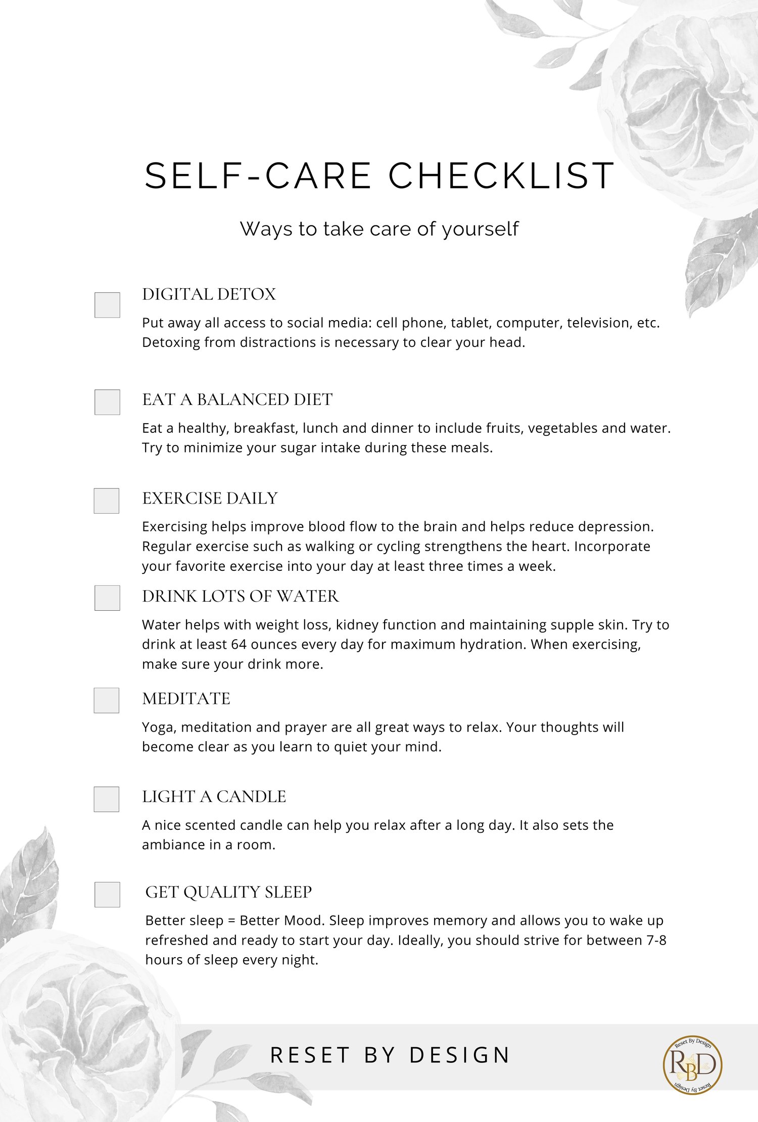This FREE printable Self-Care Worksheet Set from Reset By Design was created to help you slow down, breathe again, and rediscover your peace.