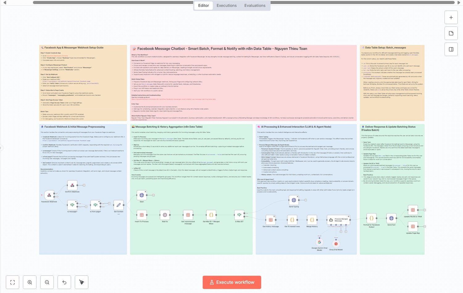 π€ Facebook Messenger AI Chatbot β Smart Batch & Context System (n8n Workflow)