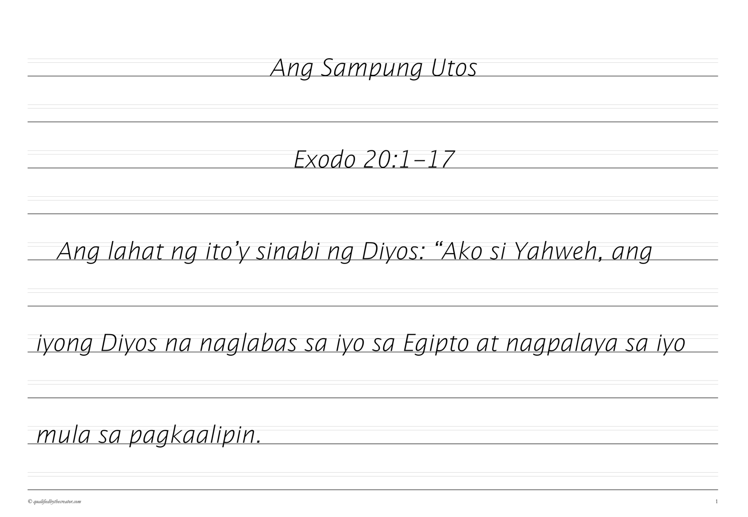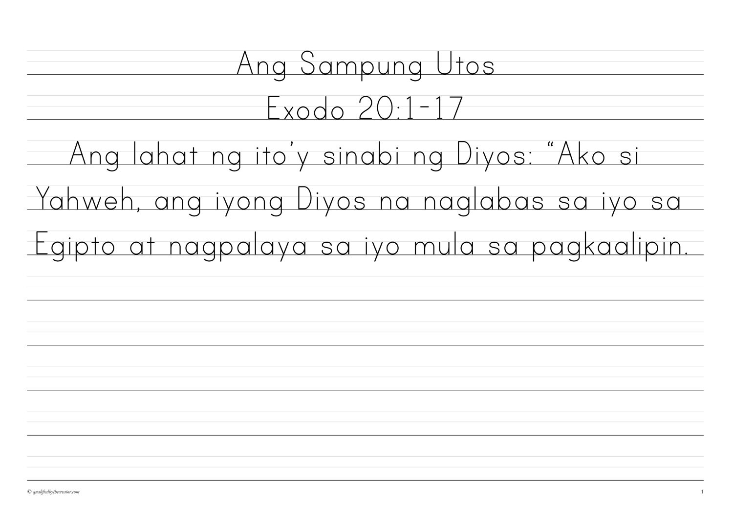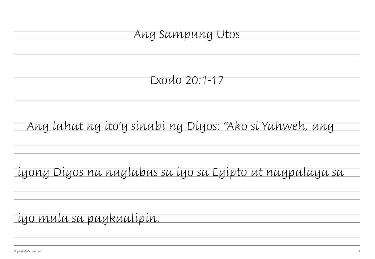 Filipino Copywork: Ang Sampung Utos (Magandang Balita Biblia version)