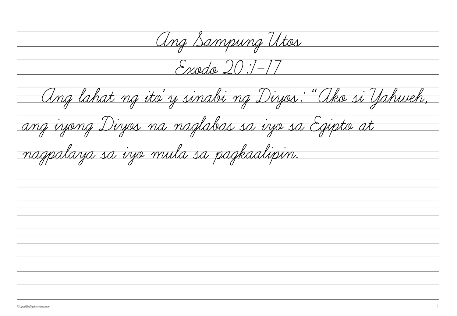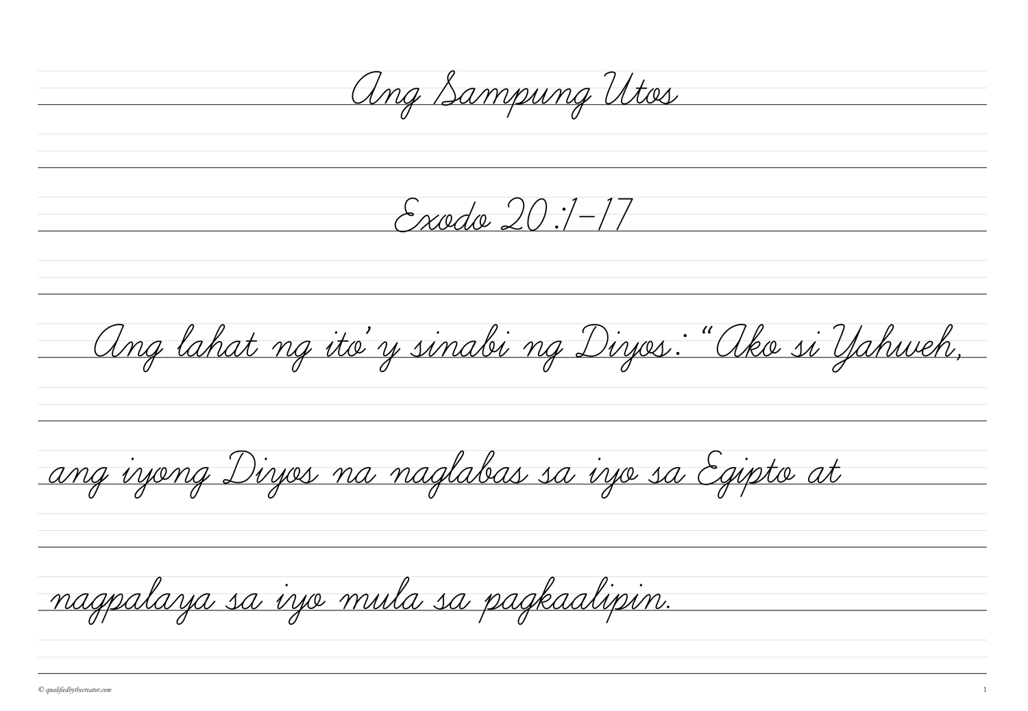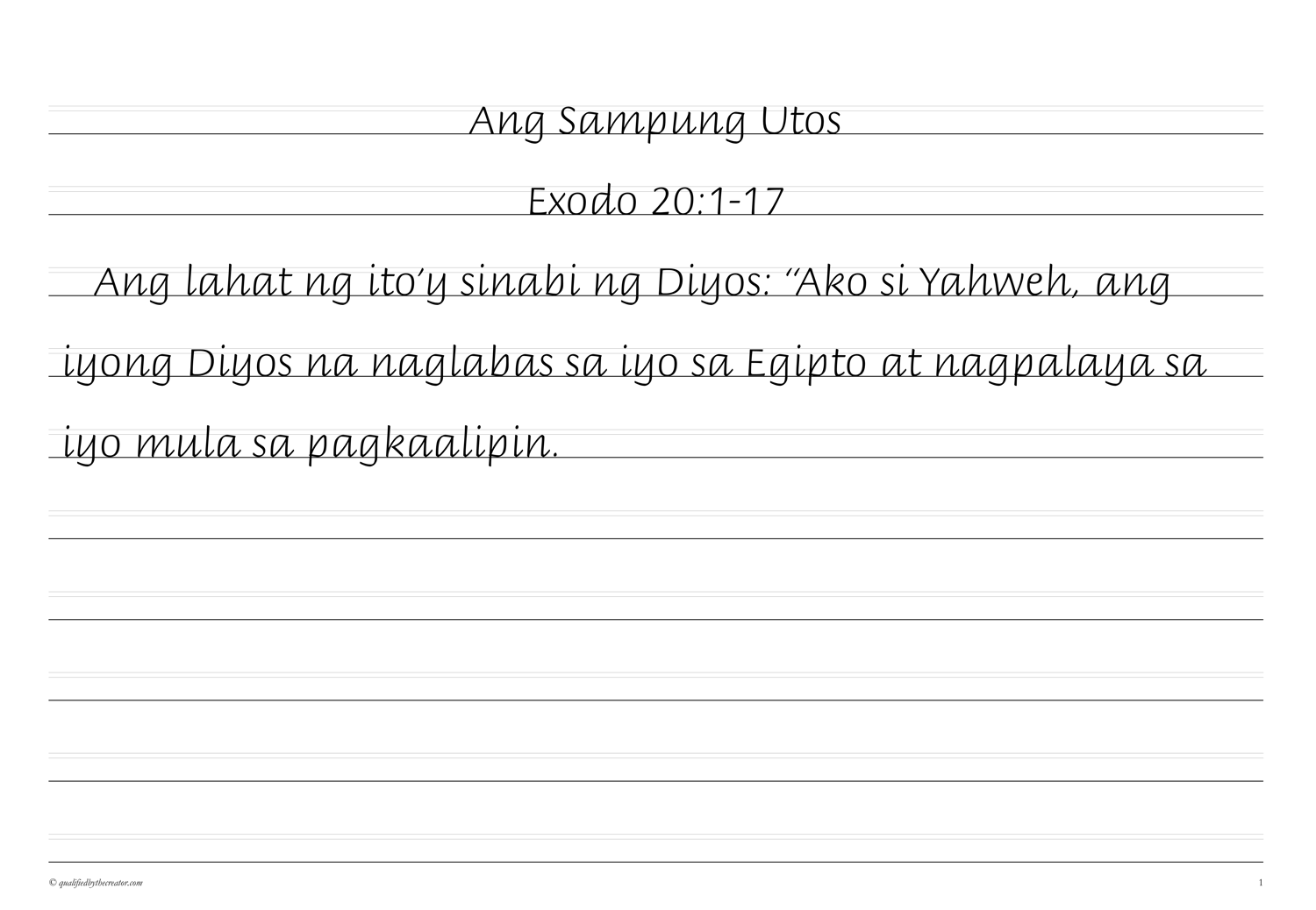 Filipino Copywork: Ang Sampung Utos (Magandang Balita Biblia version)