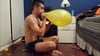 This is a revised version of an old video where Cristian sits, stomps and blows to pop balloons.