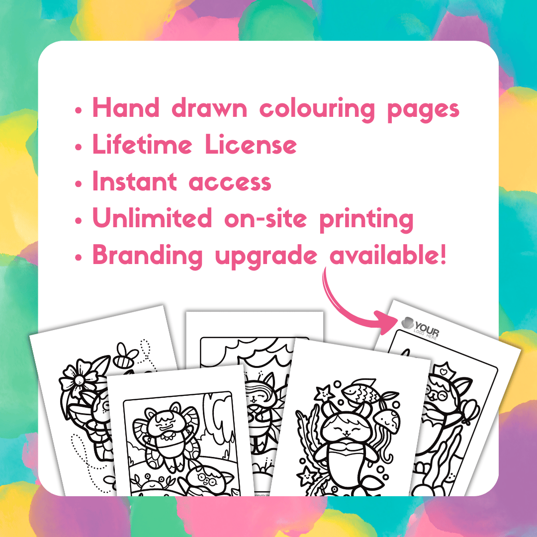 Add the Branding Upgrade and we will apply your logo to the bundle, making sure the line art, logo and licensing information fits neatly on each page. This upgrade allows for one (1) logo to be added to the existing line art colouring page. You will receive the original file of 5 colouring pages directly (with no logo). Please send us your logo via email as a PNG or SVG file. Upgrading your file generally requires 2 business days. Please allow up to 5 business days during busy periods. We will then email your upgraded file with your logo to you as a PDF print ready file.