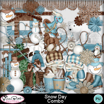 All the fun of a day in the snow in hues of blue, tan, brown, and cream. Embellishments include snowmen, snow kids, deer, skis, ice skates, sleds, plus lots more including lots and lots of SNOW! This is a must have for capturing those winter fun projects. Combo includes the background pack and embellishment pack.