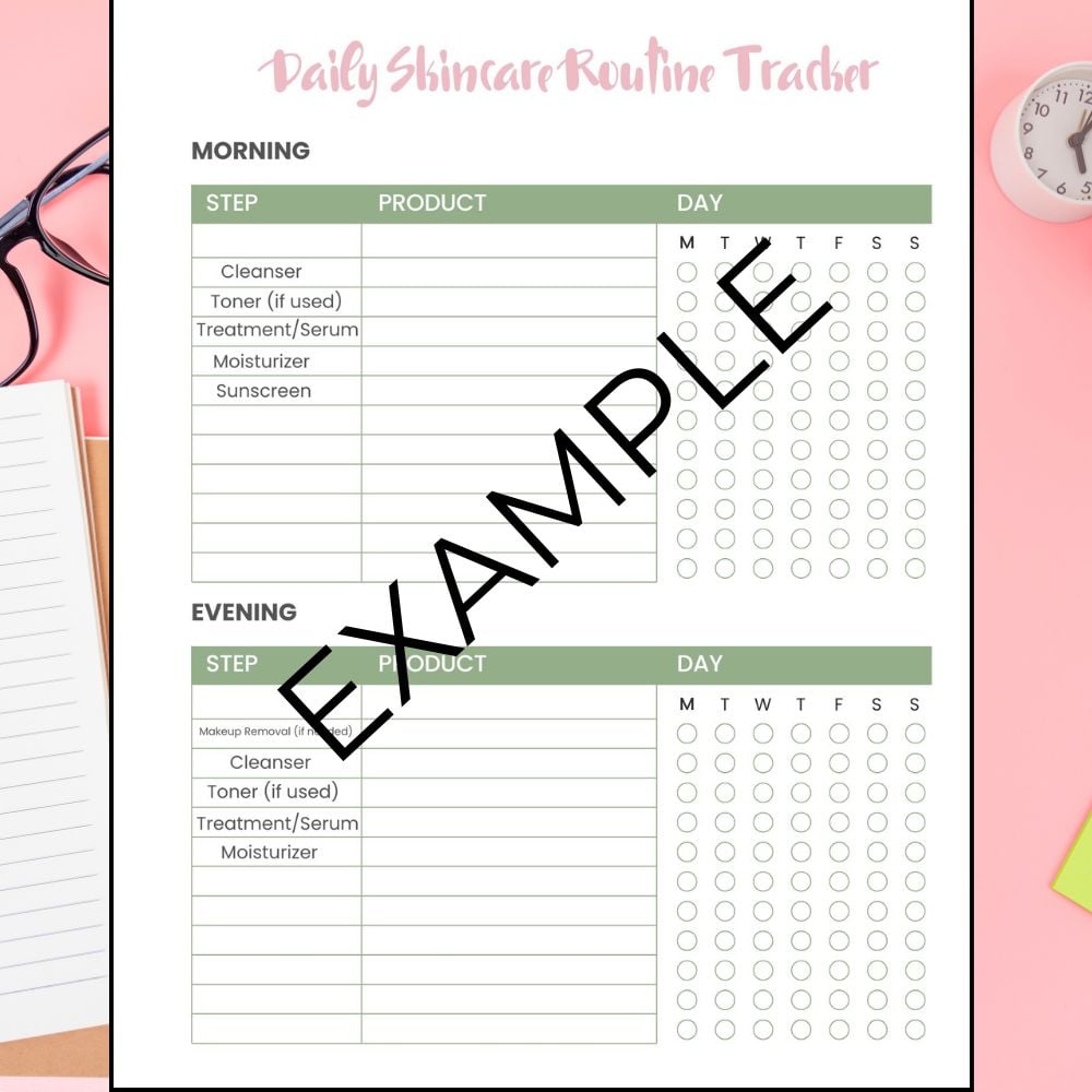 ✔ Daily Skincare Routine Tracker – Build a habit with morning & evening steps.