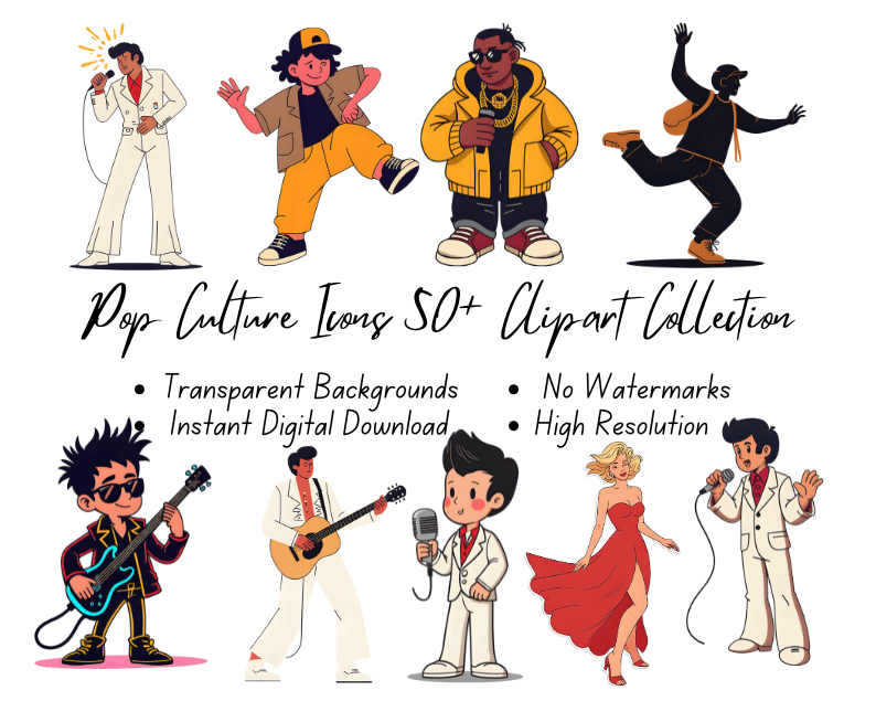50+ Pop Culture Icons Clipart Collection | High-Resolution | Instant Digital Download | No Watermark
