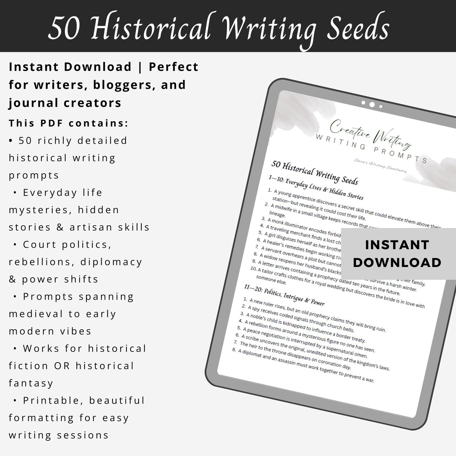 🏺 50 Historical Writing Seeds