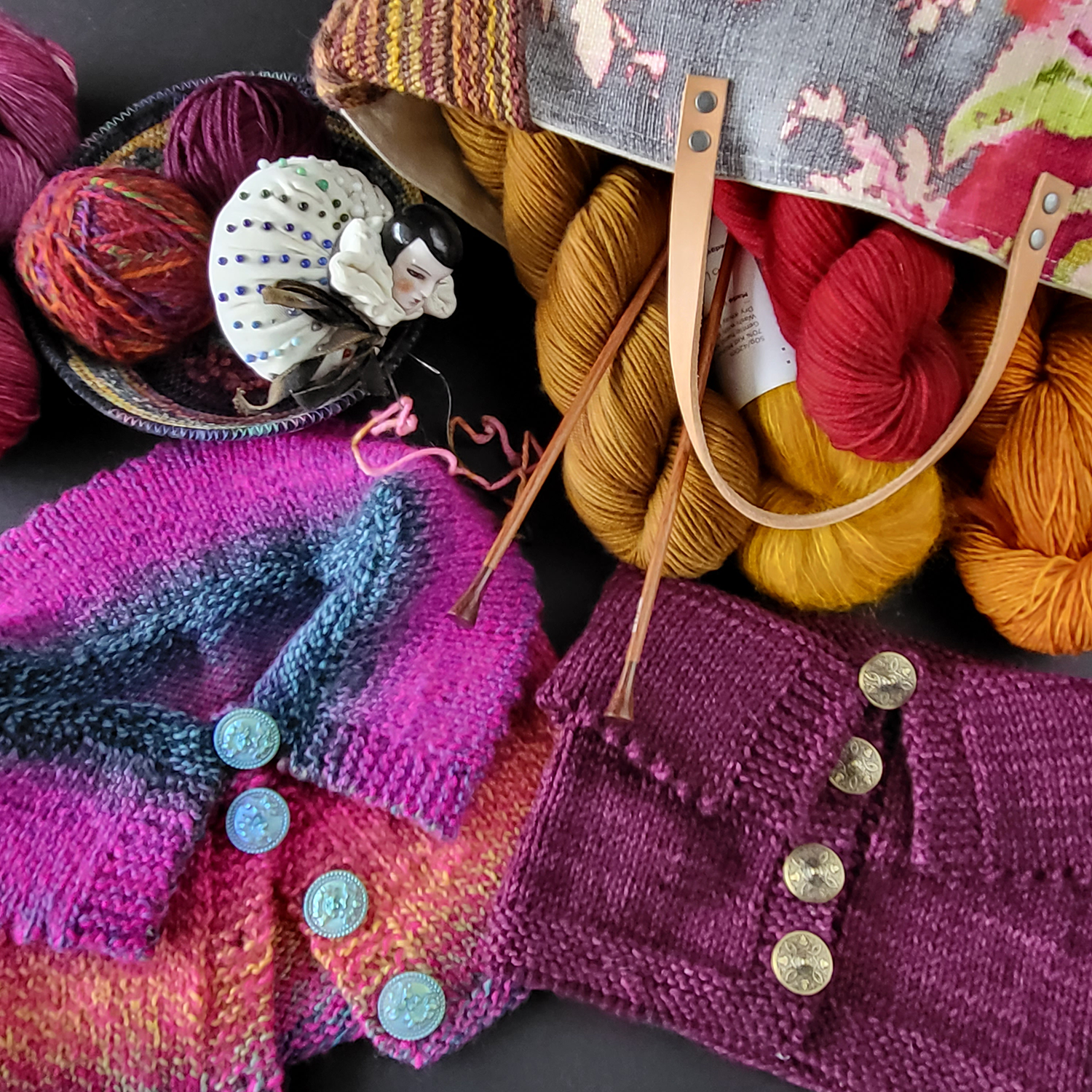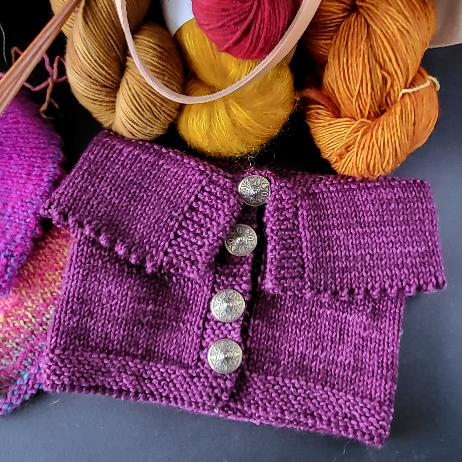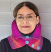 Originally designed to make the most of the gorgeous long repeats in Junction Fiber Mills Making Tracks yarn, this cowl looks just a cozy knit up in a solid color. The double layered collar has enough body to stand up in the back, keeping your neck warm while making you feel like an Elizabethan queen.