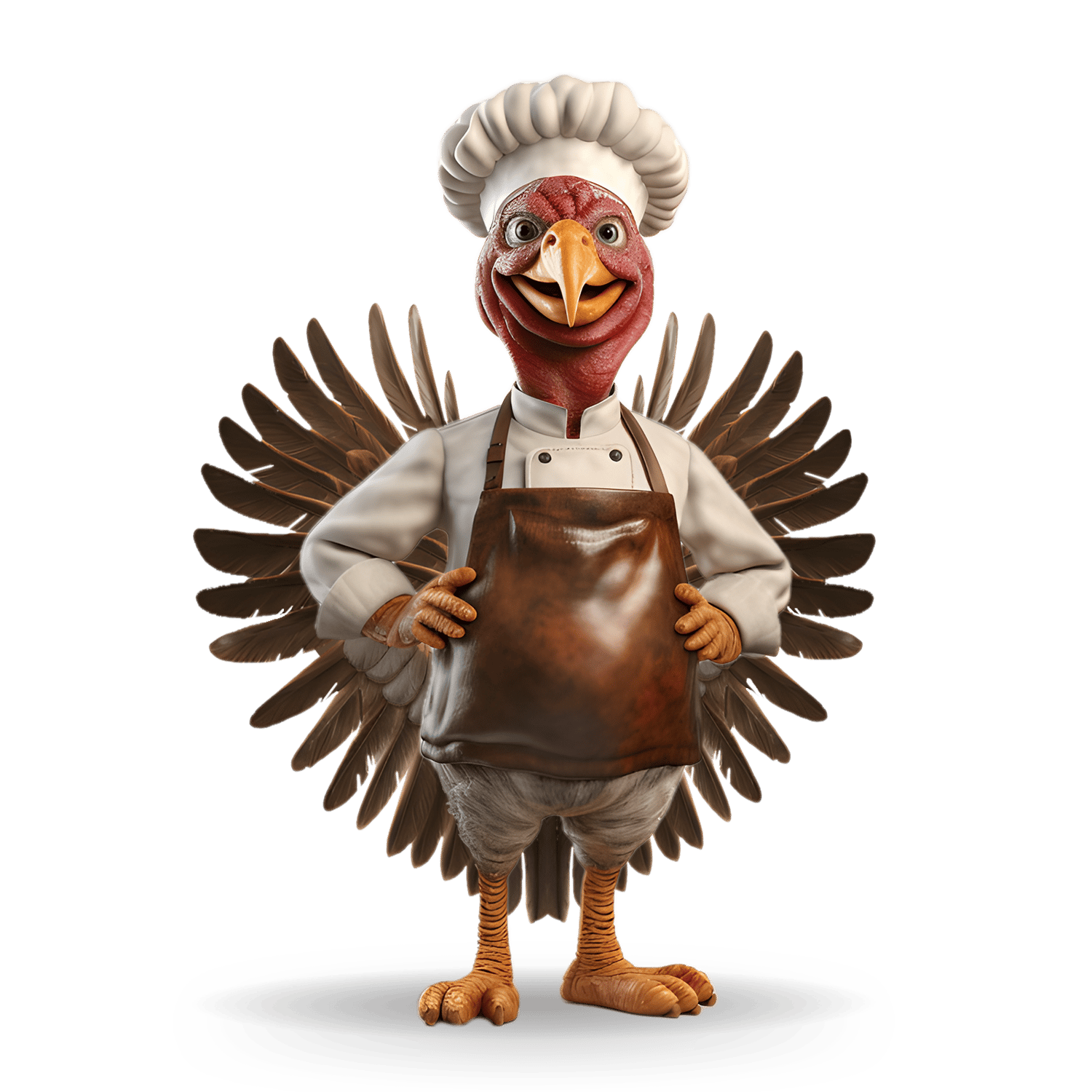 In a world saturated with content, the unique and imaginative capture attention. This image is your recipe for spreading joy and creativity in your designs that is sure to engage viewers. Infuse warmth into your creations with this charismatic turkey chef.