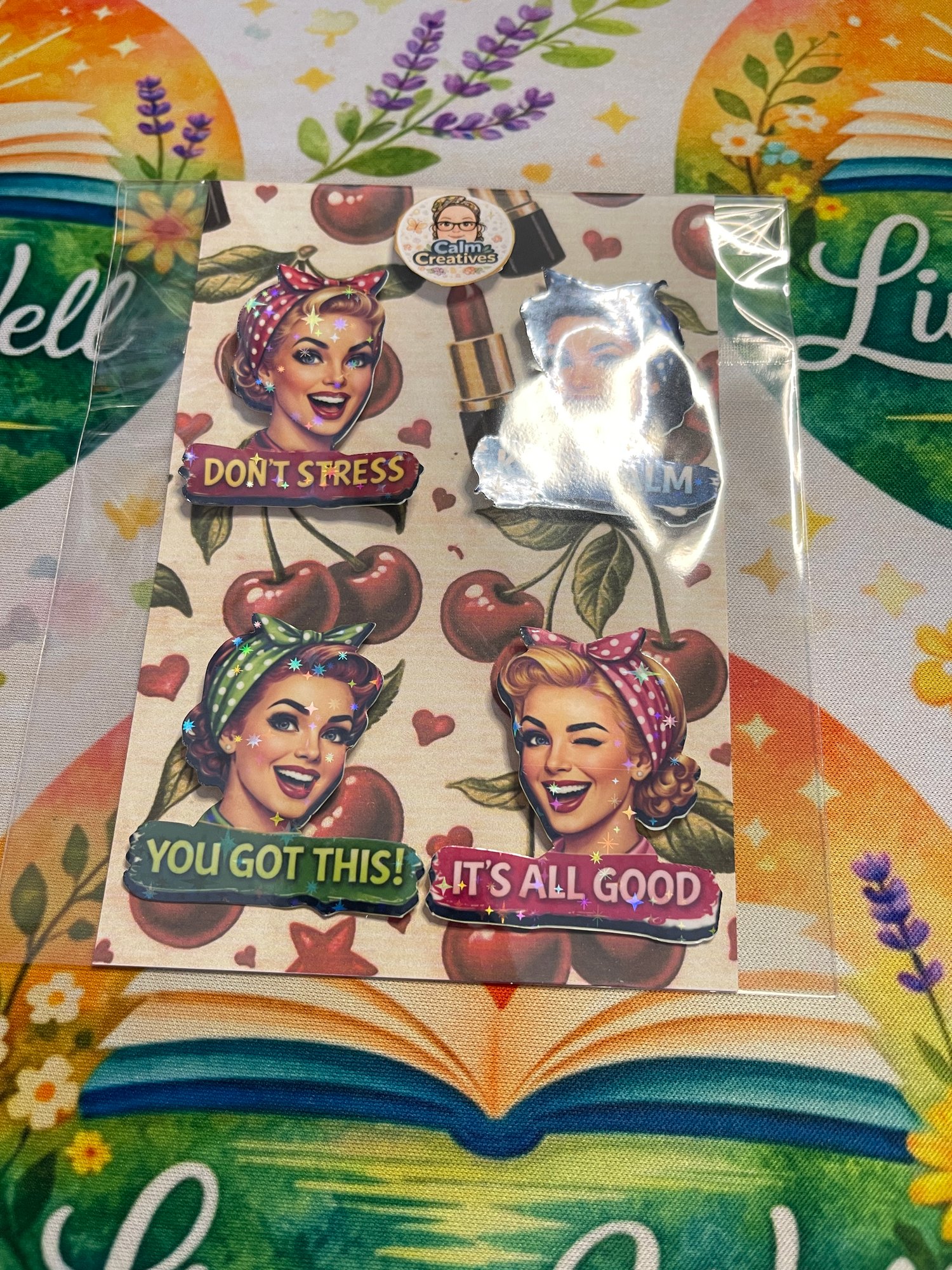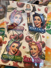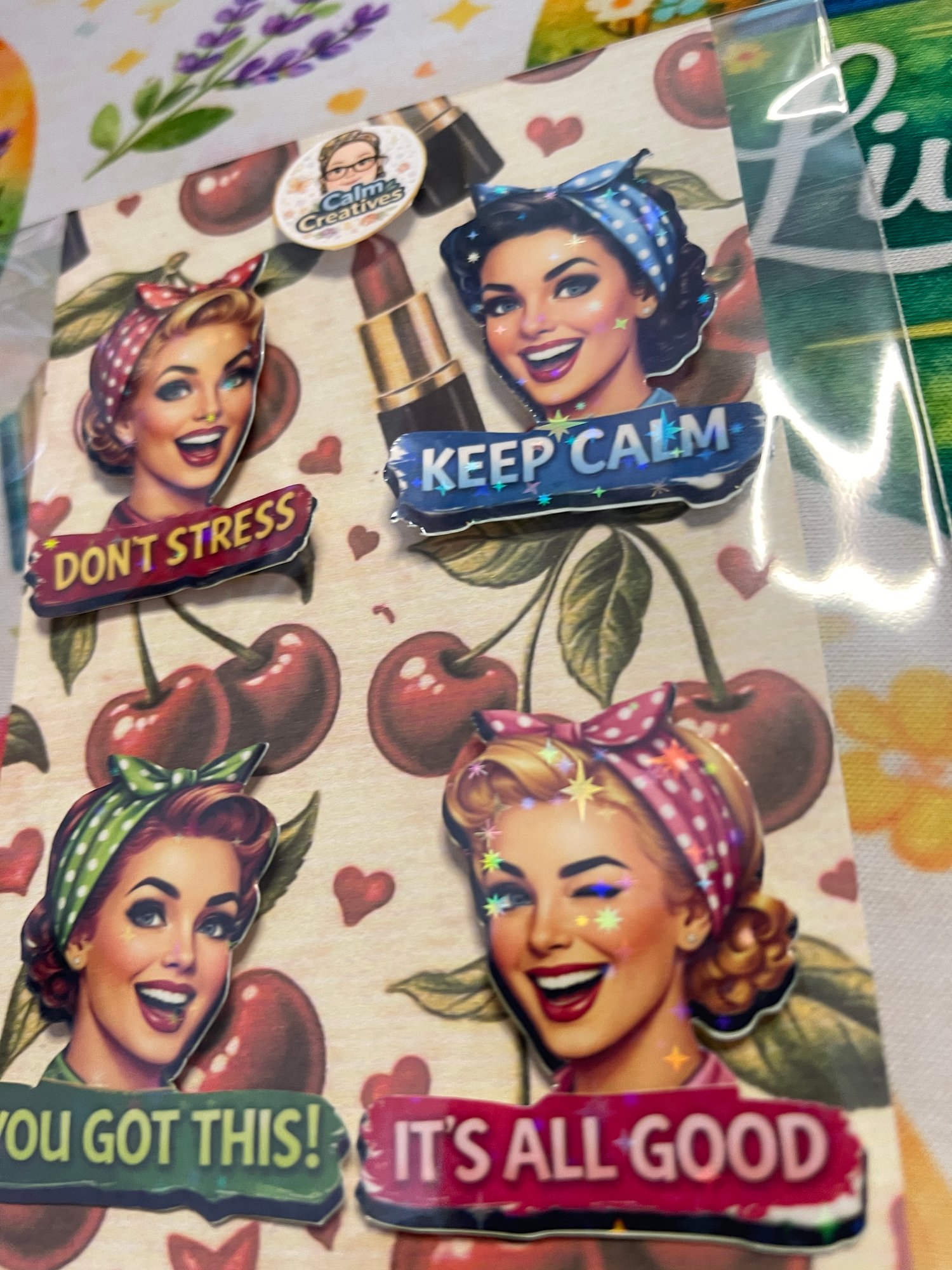Calm Creatives Sweary Vintage ladies 2” holographic vinyl stickers packing 4