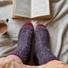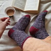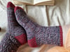 They are knitted cuff down with a contrasting yarn for cuffs, heels, and toes.