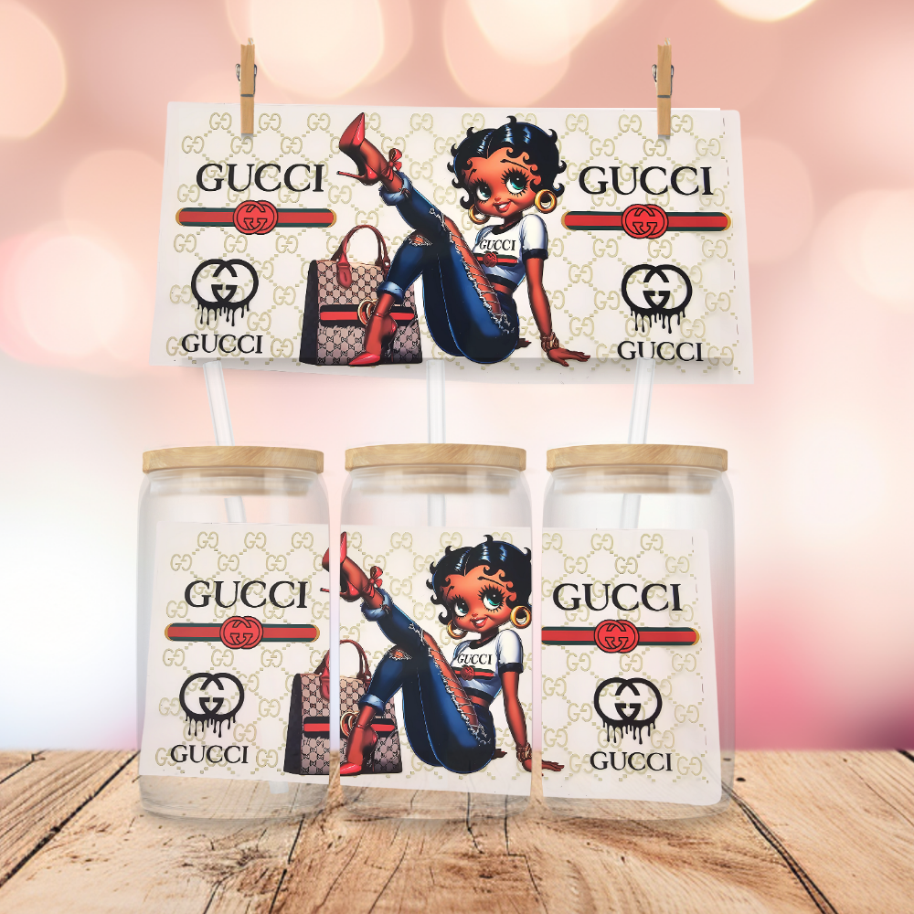 Luxury is in the details—and Miss B is serving designer diva vibes with her signature G-inspired purse in this must-have wrap! Perfectly sized for 16 oz Libbey cups, tumblers, and more, this UV DTF-ready decal adds a splash of glam to any drinkware or custom gift.