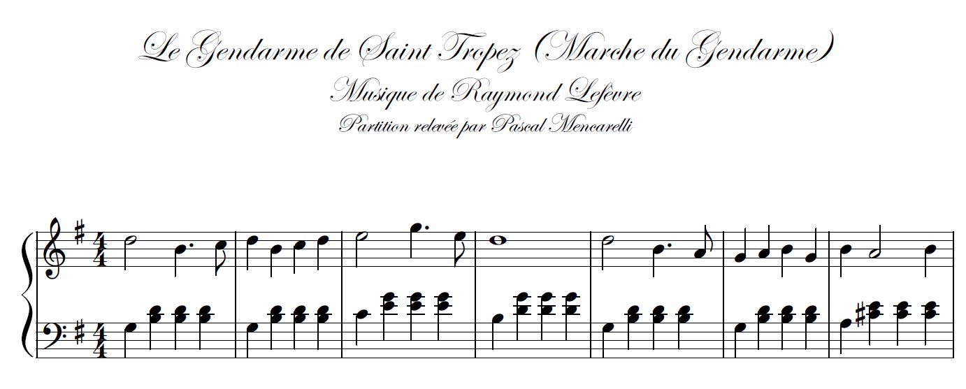 Marche du Gendarme de St Tropez - Raymond Lefèvre - Partition Piano