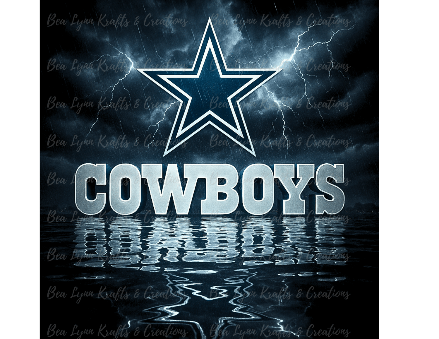 Dallas Cowboys Storm PNG – Floating Team Name with Reflection and Lightning Background – Digital Download