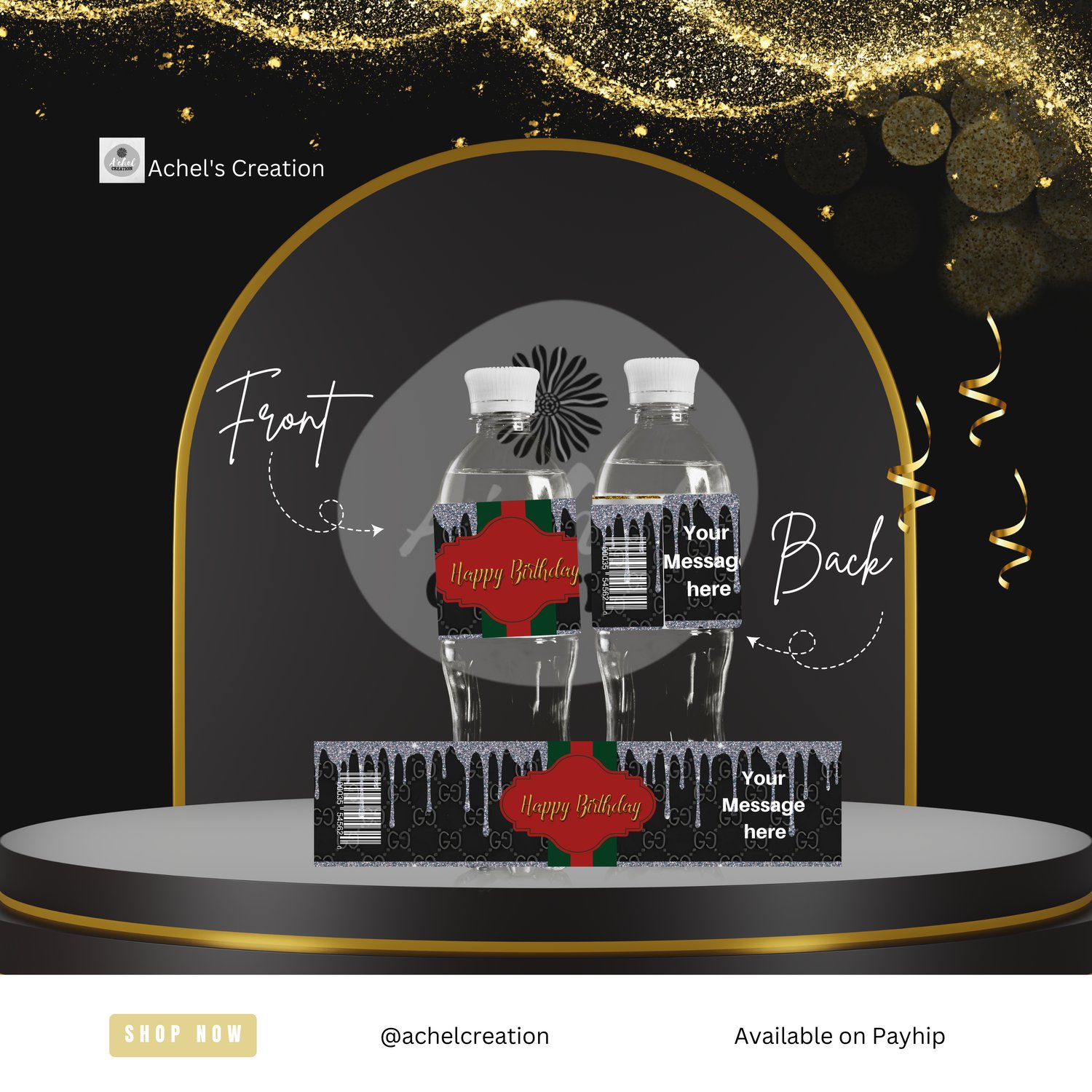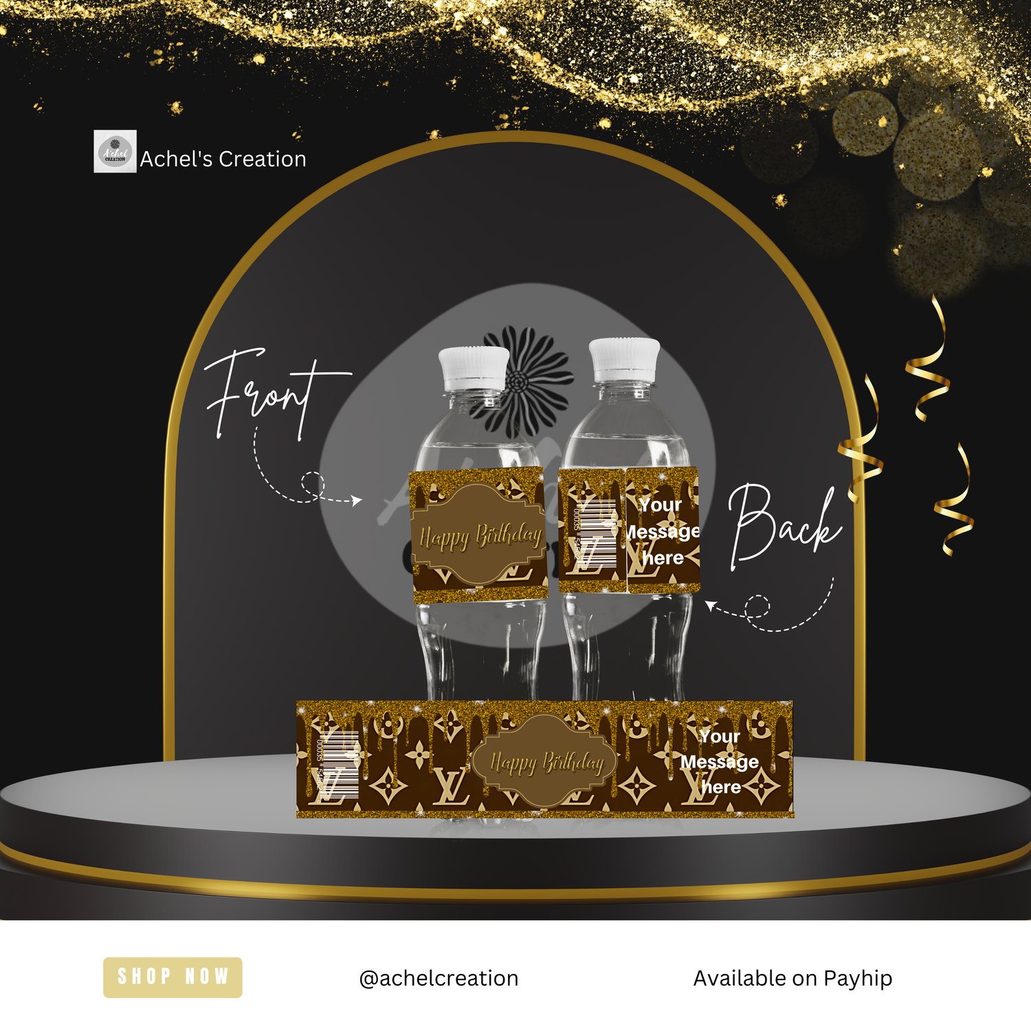 Elevate your event with 10 Luxury Water Bottle Label Templates inspired by iconic brands like Gucci, Louis Vuitton, Chanel, Hermès, Burberry, Fendi, Prada, Balenciaga, Dior, and YSL. These chic and stylish designs bring a touch of elegance to any occasion.