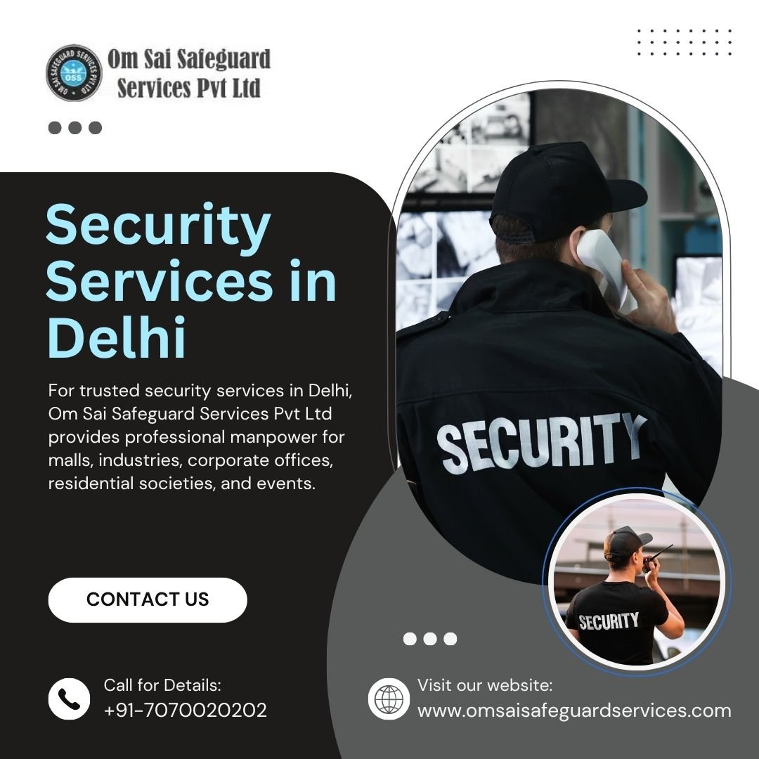 For trusted security services in Delhi, Om Sai Safeguard Services Pvt Ltd provides professional manpower for malls, industries, corporate offices, residential societies, and events. Our trained guards and supervisors maintain strict discipline, ensure constant monitoring, and respond quickly to emergencies. With years of expertise, we specialize in offering reliable security solutions that create a safe environment for businesses, families, and large gatherings across Delhi.