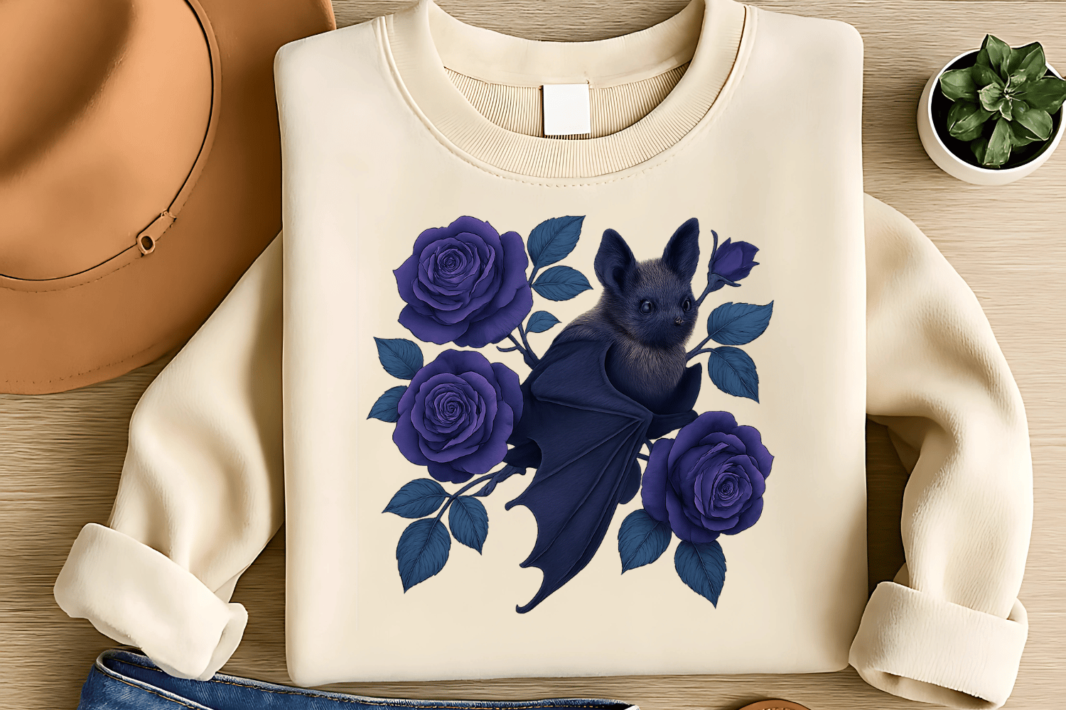 Twilight Rose Bat Sublimation PNG – Gothic Floral Halloween T-Shirt Design – Dark and Elegant – 300 DPI Instant Digital Download