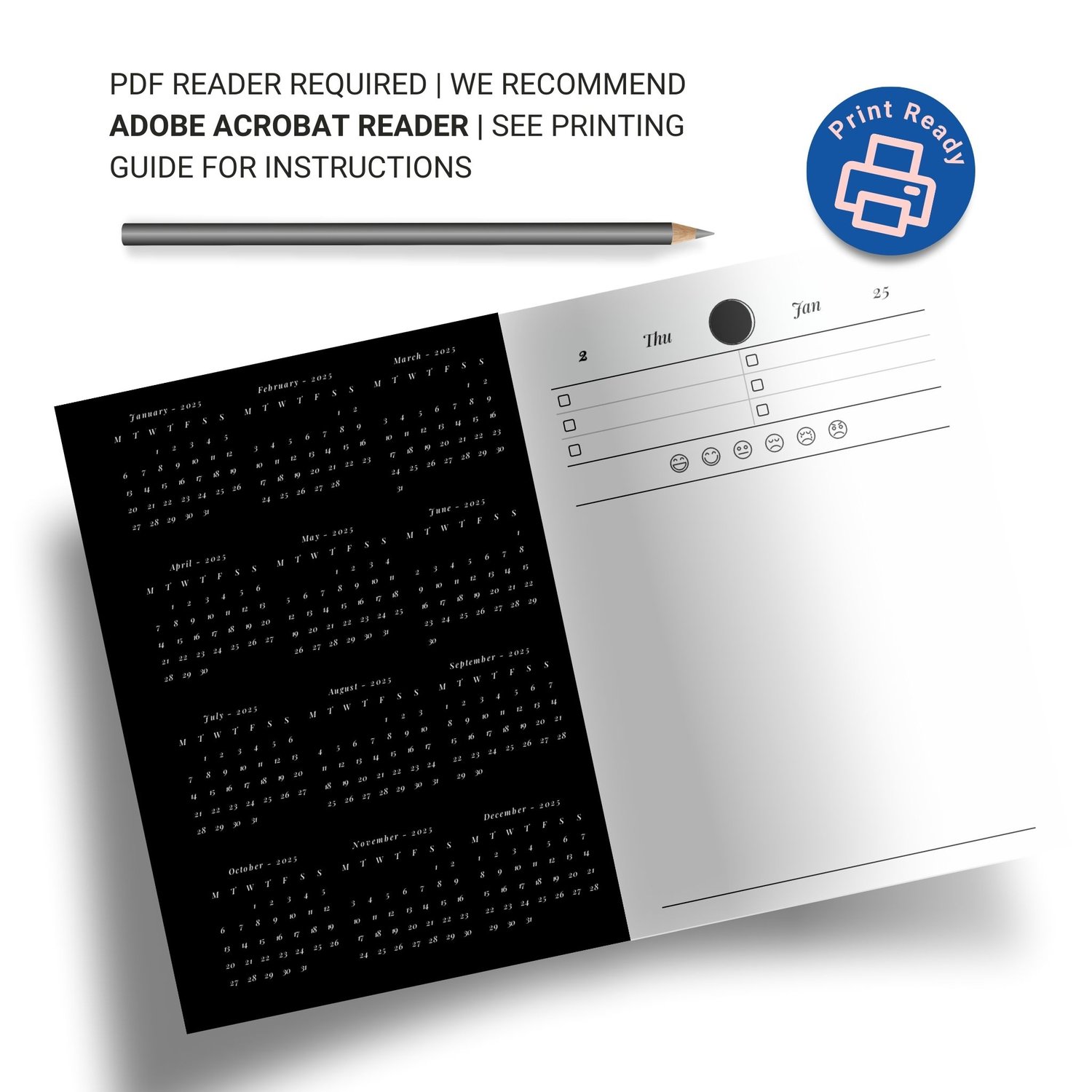 - 2025 Dated: Stay on track with dated pages from January 1 to December 31.