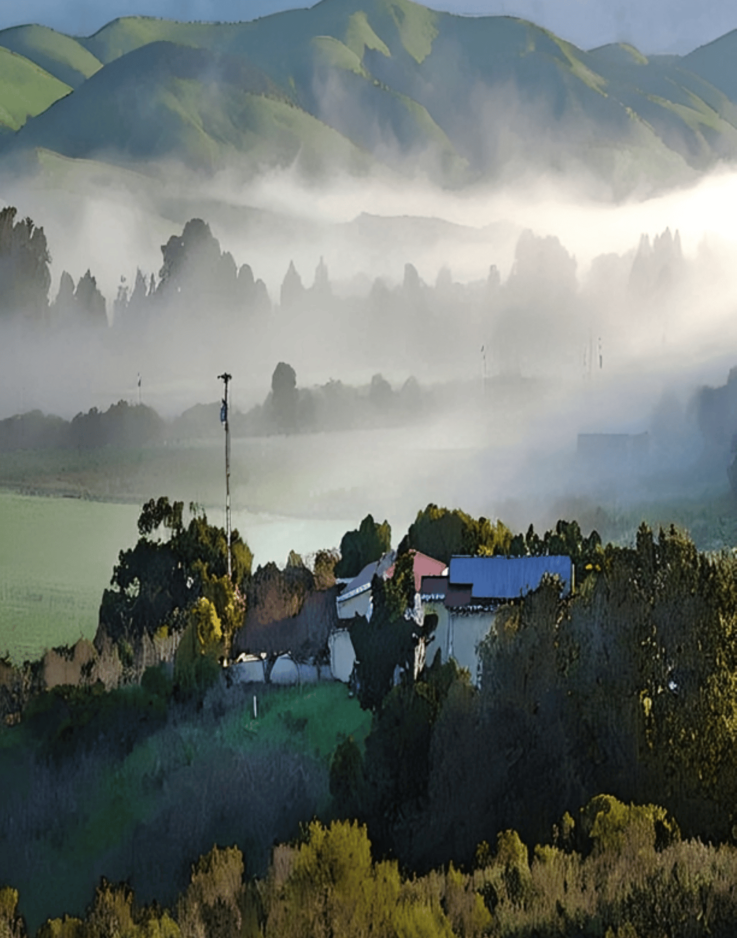 Ancient Lakeside Village, Vintage Village, Top Art, Nostalgic Rural life, Nature, Cool Nature, Beautiful Nature, Sunrise, Natural Landscape, Wall Art, Digital Art.