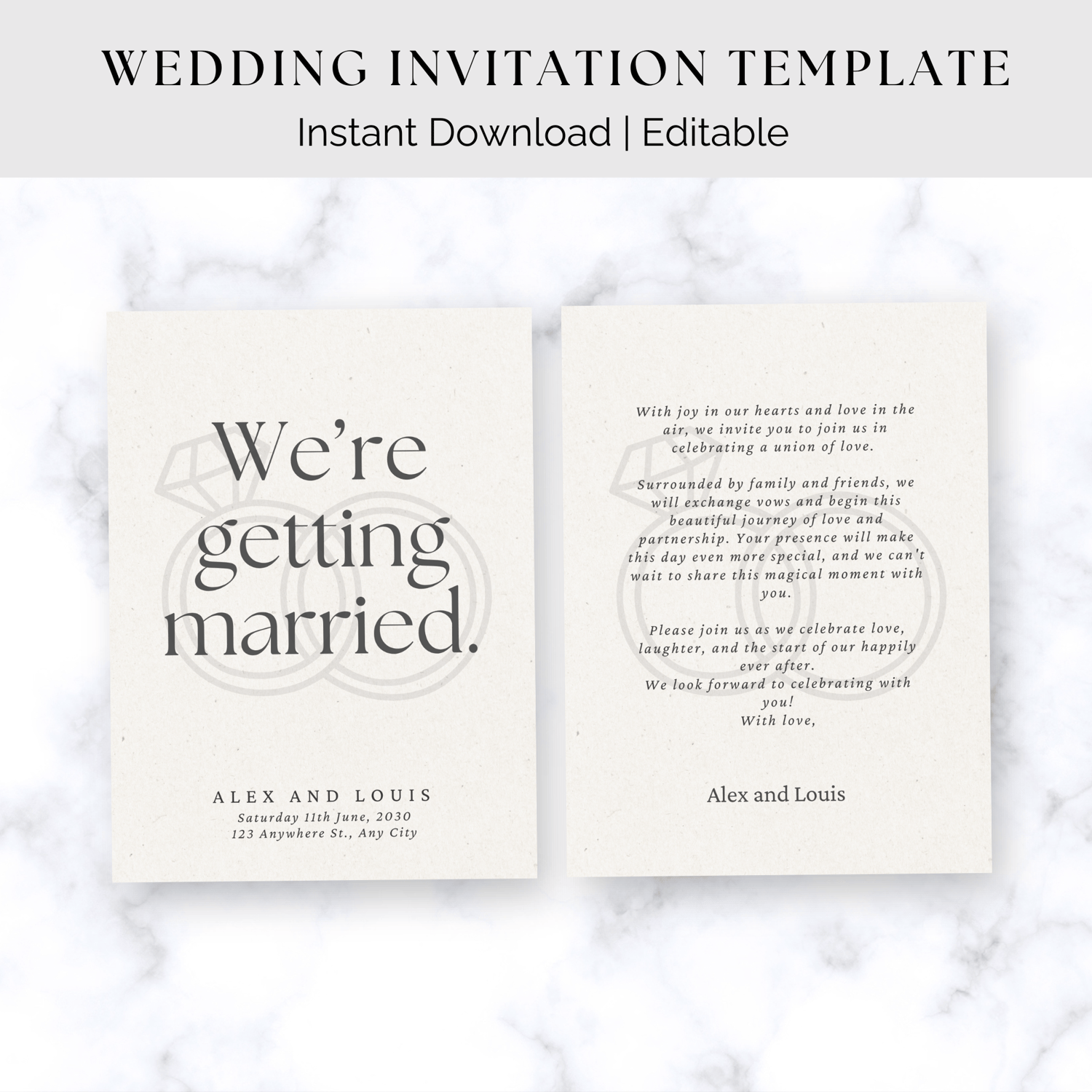 Create stunning wedding invites effortlessly with this Wedding Invitation Template! Designed for modern couples, this customizable template helps you craft the perfect invitation to reflect your unique style and love story.