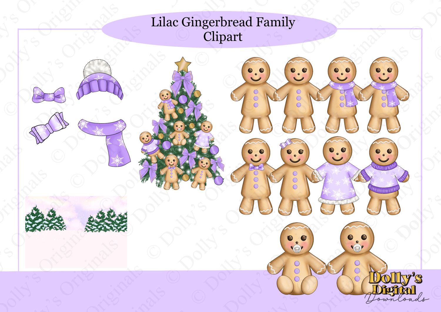 Includes the Lilac Gingerbread Family Clipart Pack (16 PNGs)