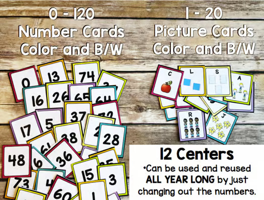 Keep your students engaged all year long with this versatile set of 12 math centers designed to build and reinforce number sense skills in Kindergarten through 2nd grade. With colorful number cards from 0–120 and number picture cards for 1–20, these interactive centers are perfect for guided groups, math rotations, or independent practice.