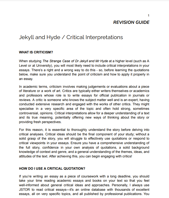 A guided study resource for teachers and students who want to engage with Jekyll and Hyde on a higher level!
