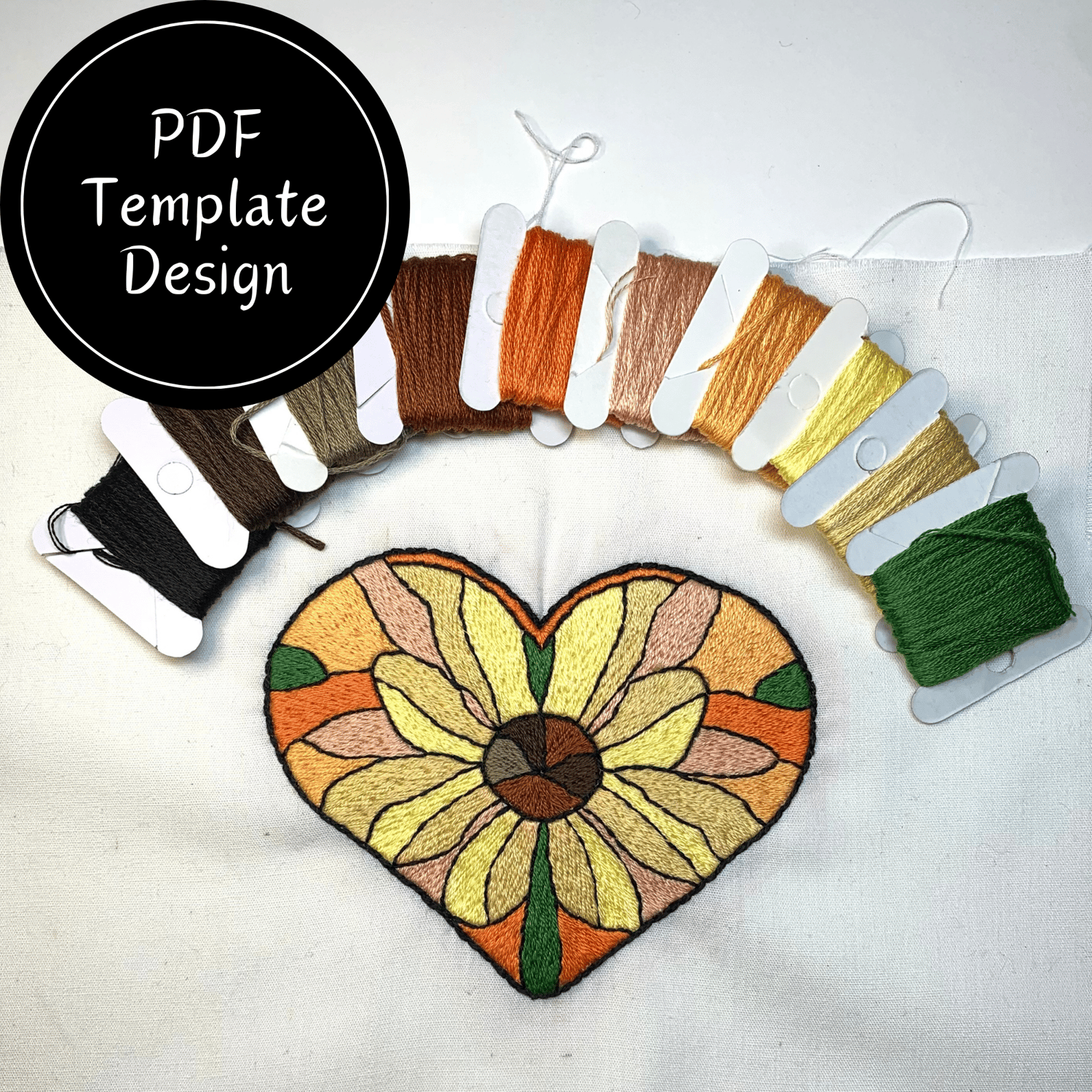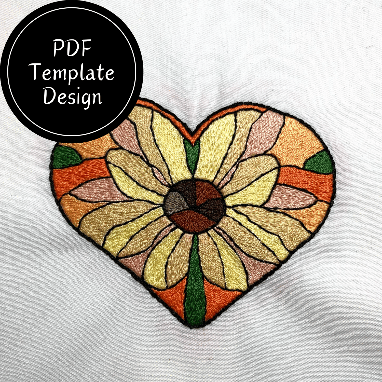 Sunflower Stained Glass Hand Embroidery Pattern - DIY Design