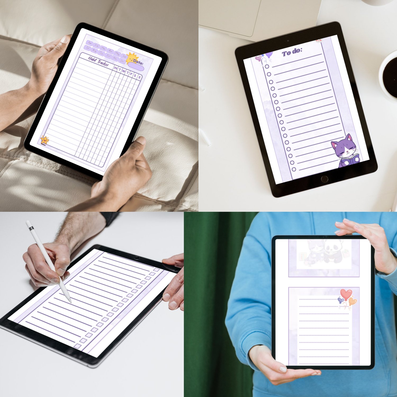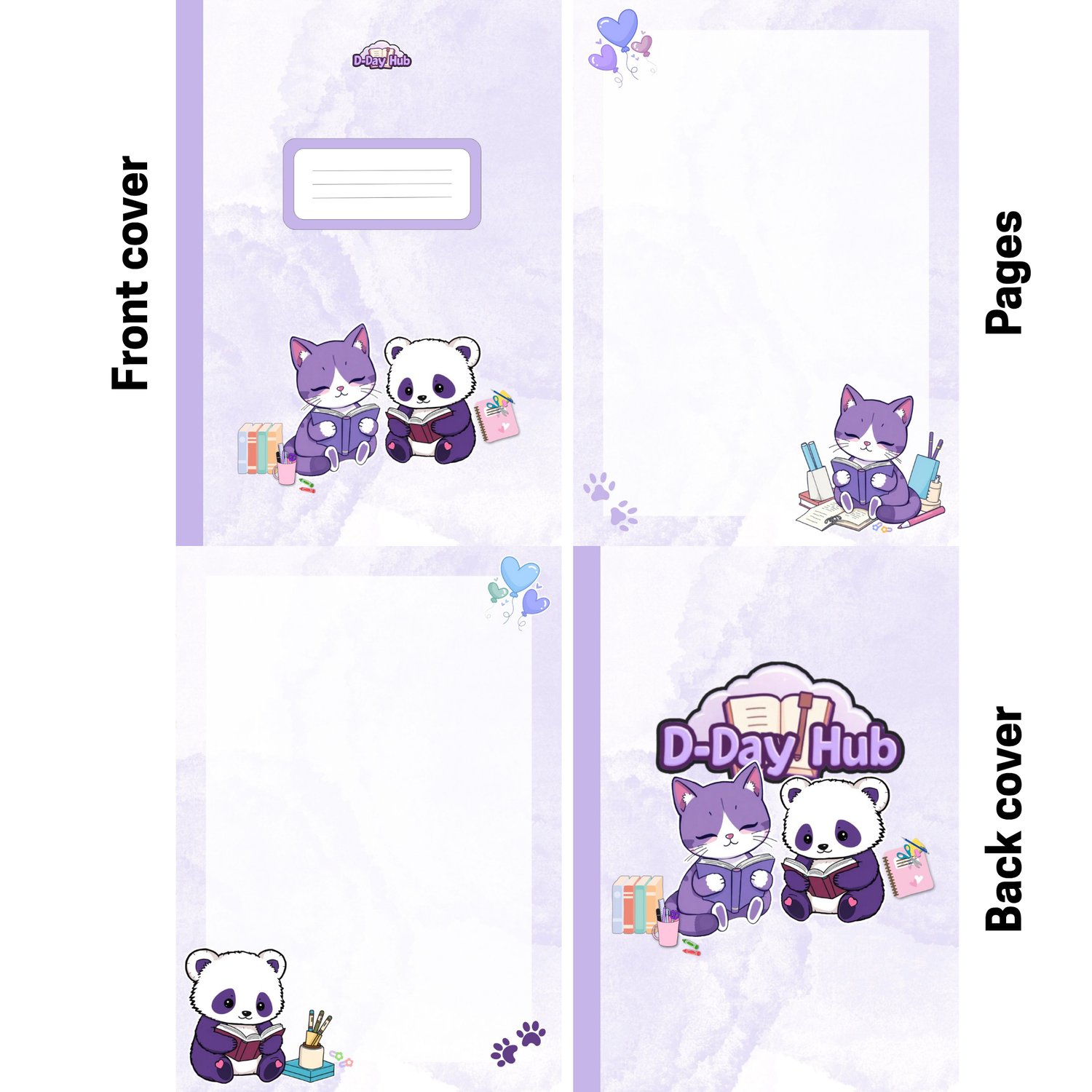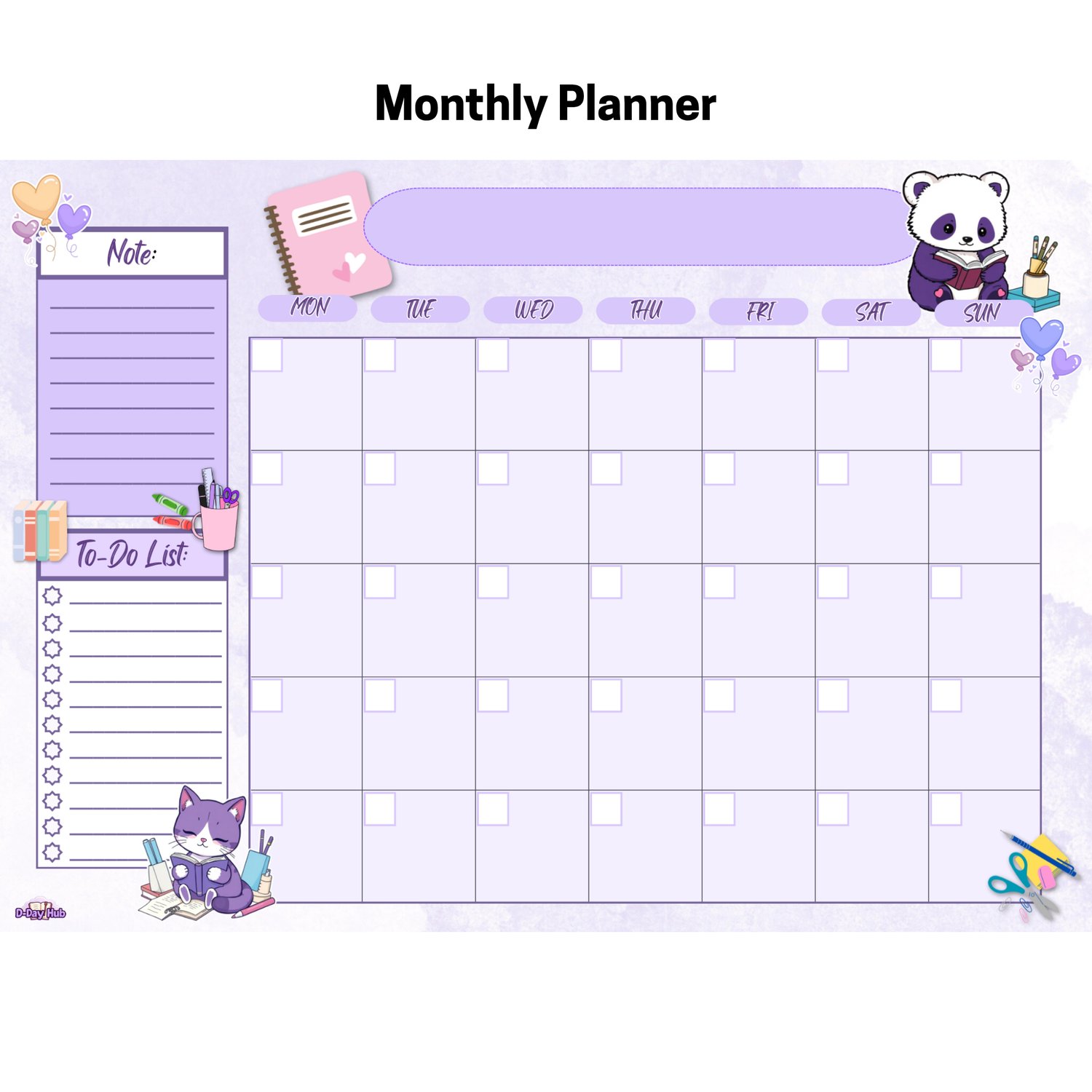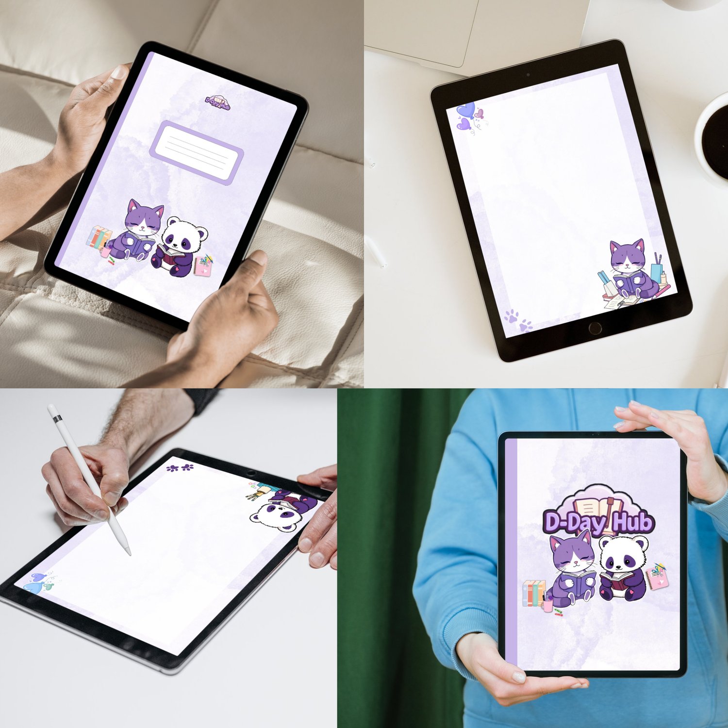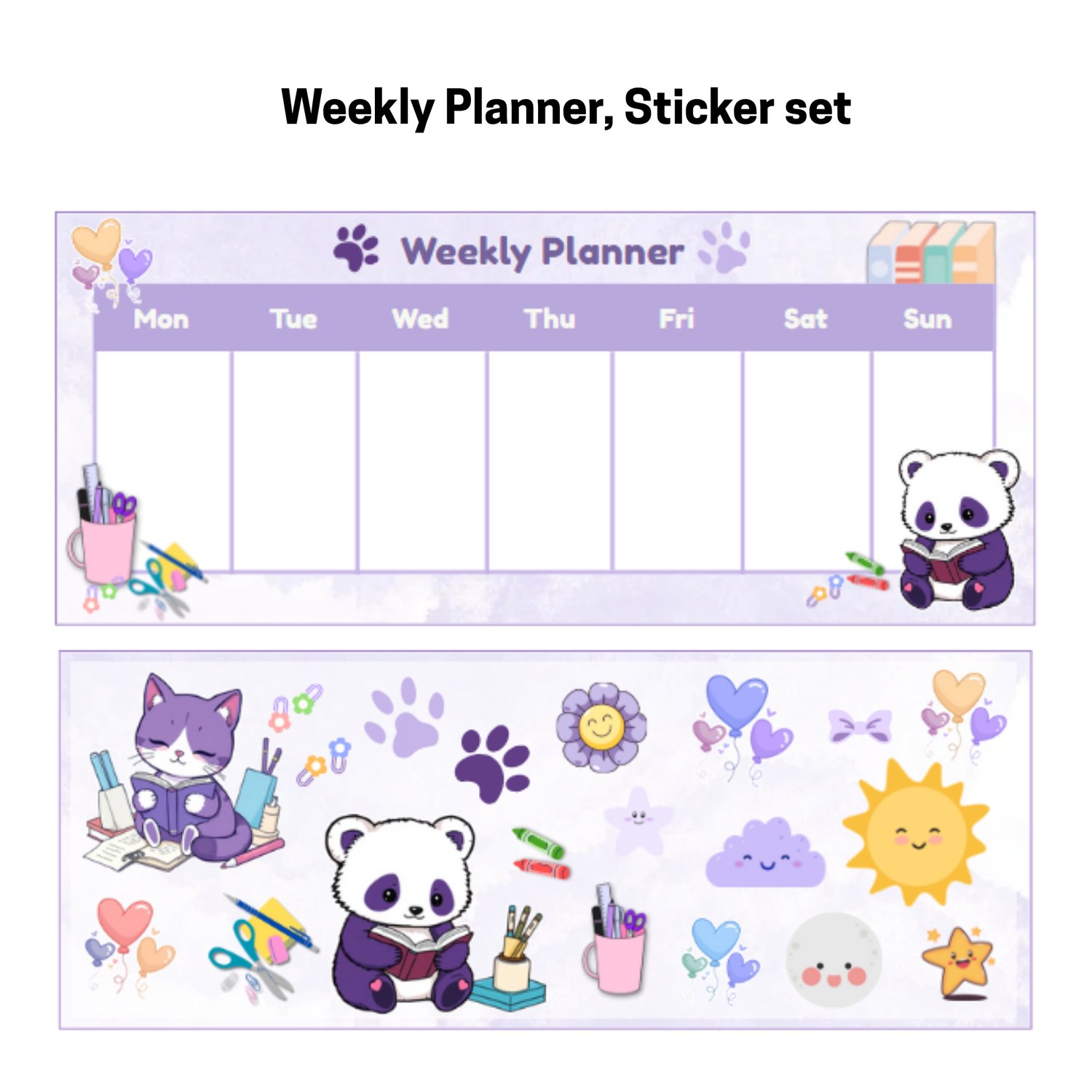 We've designed this exclusive set to help you manage your tasks, goals, and daily life with a light and lovely touch. The entire collection features a soothing light purple theme and is sprinkled with appearances by our adorable mascots: Yoonie the purple and white cat and Paige the panda!