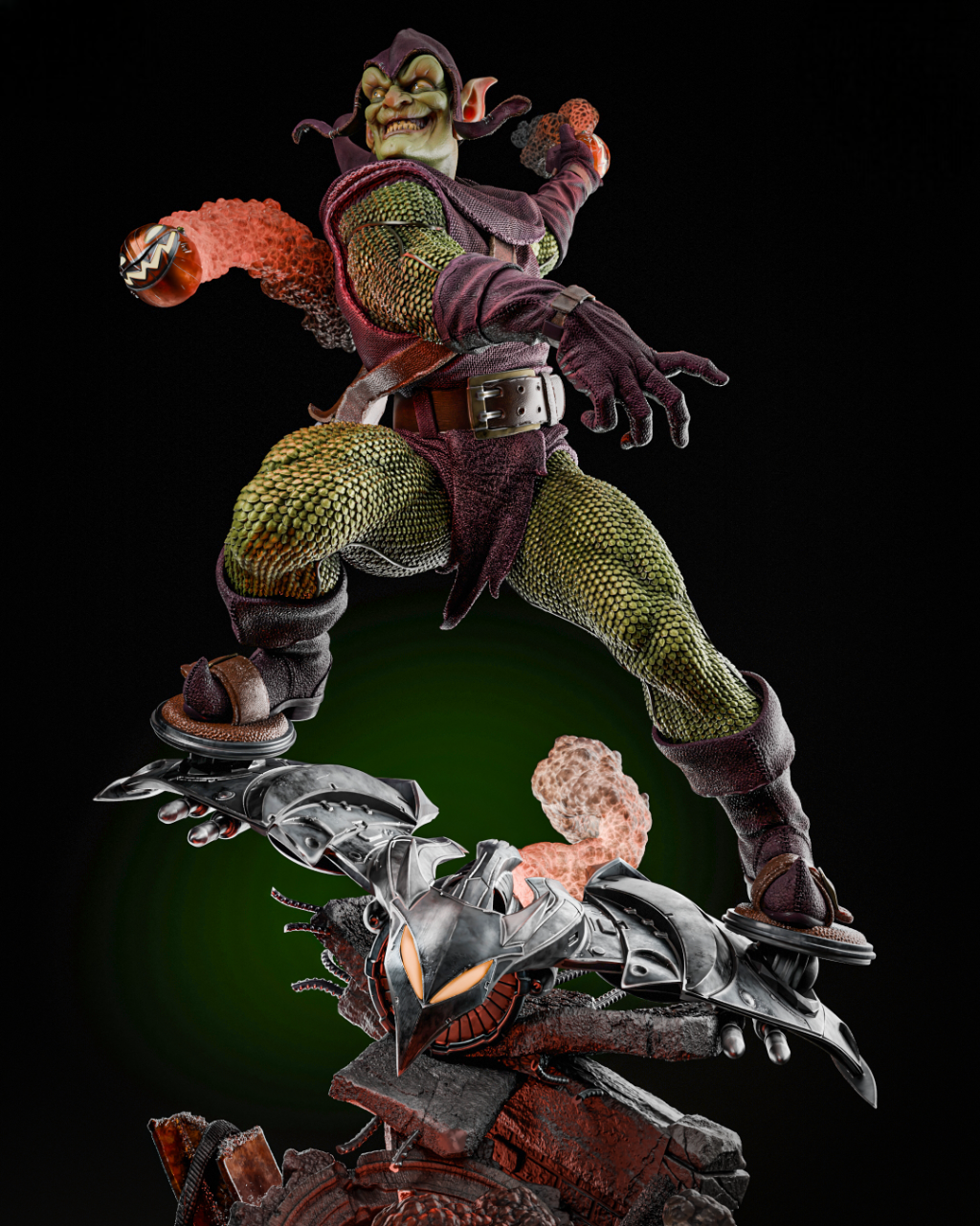 This dynamic statue captures the Green Goblin mid-flight on his glider, ready to throw a pumpkin bomb — the perfect addition to any Marvel or Spider-Man collection.