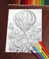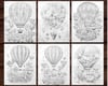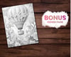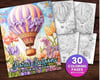 30 Blooming Hot Air Balloons Coloring Page Book, Adults + kids- Instant Download Grayscale Coloring Page, Printable PDF, Flower coloring