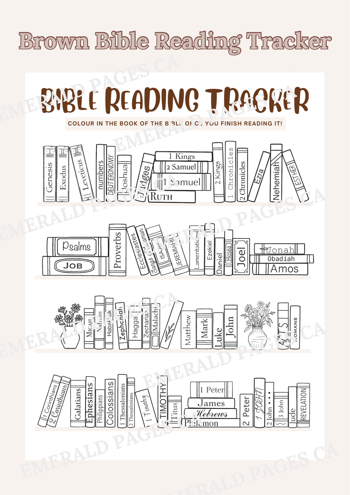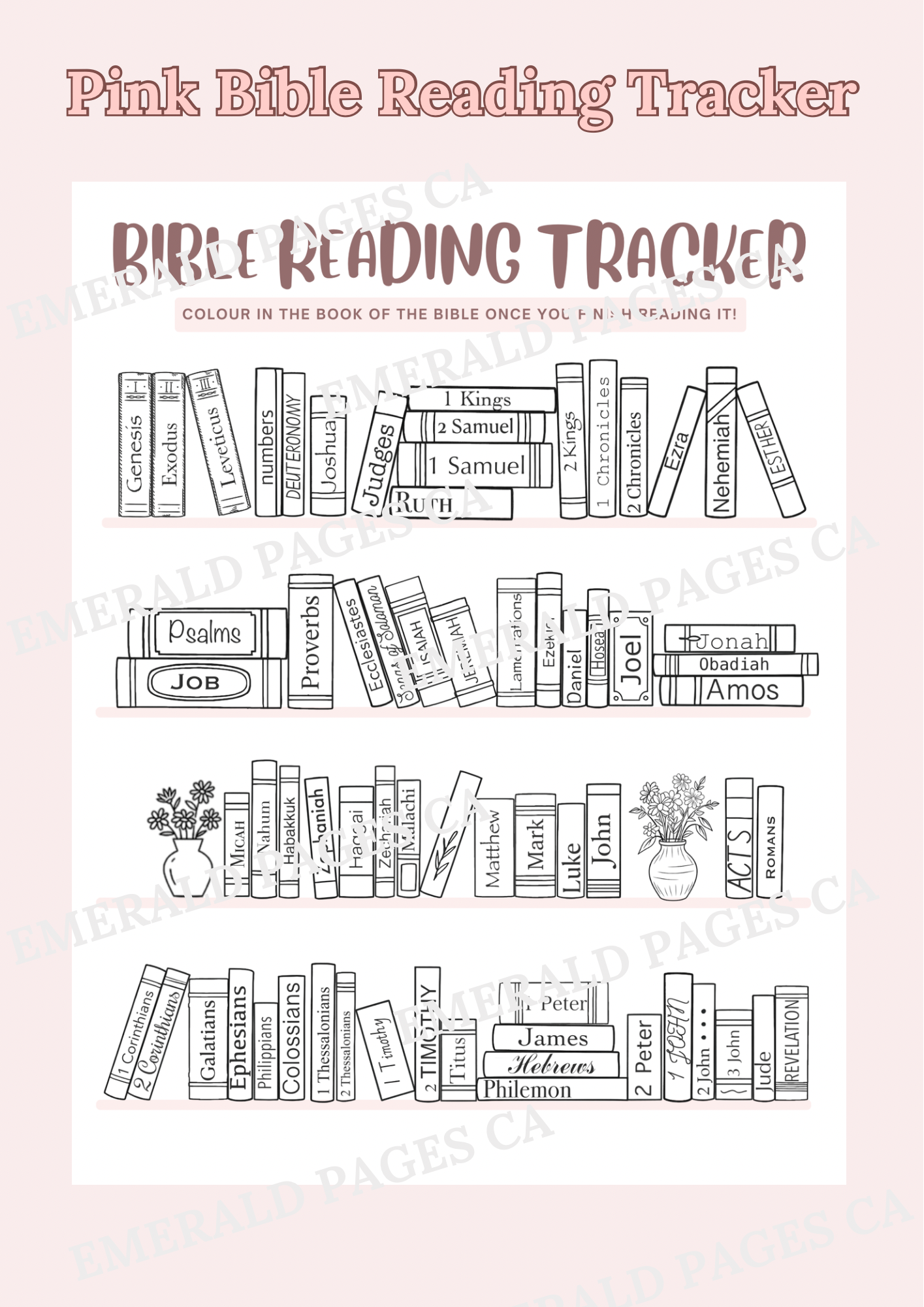 Pink and Brown Bible Reading Tracker in A4, Letter and Half Letter Sizes