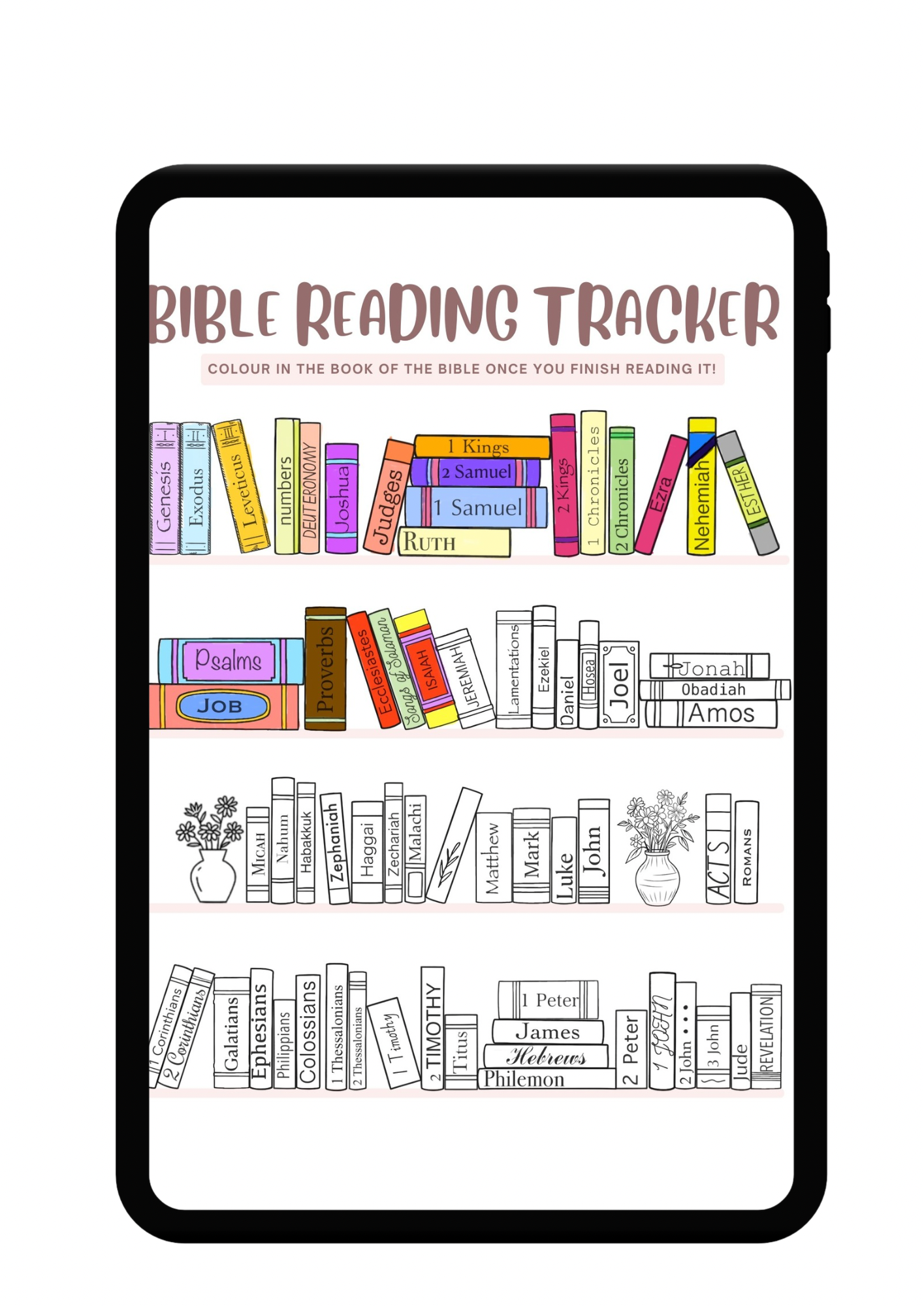 Make Bible reading visual and fun with this bookshelf-style ✨Pink and Brown Bible Reading Tracker✨ sheets! Color in each book of the Bible as you complete it. A beautiful and interactive way to stay motivated, whether you’re reading through the Bible in a year or at your own pace.
