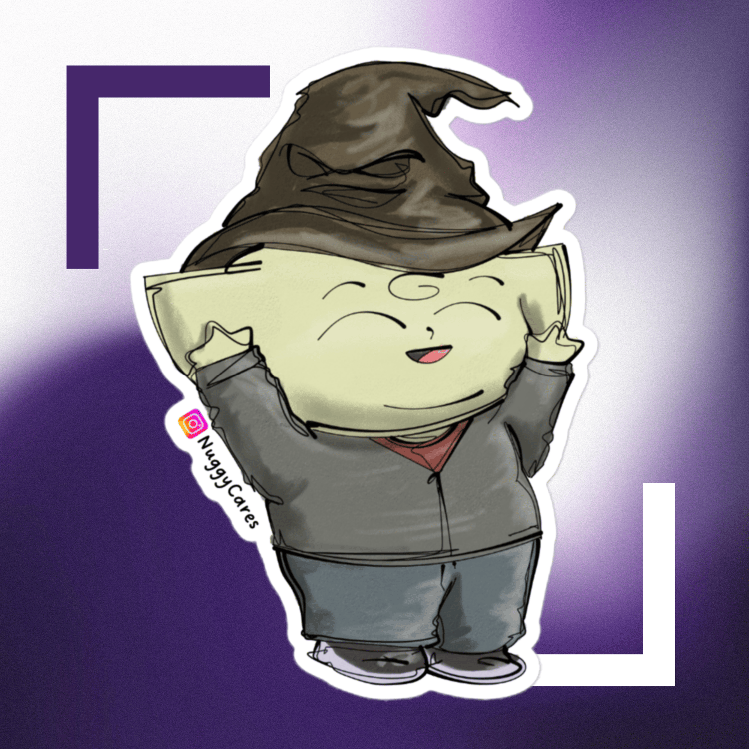 It’s a magical moment for Nuggy as the Sorting Hat makes its decision! This charming sticker captures Nuggy seated with the iconic hat atop his head, filled with excitement and curiosity. A perfect keepsake for fans of magical beginnings!