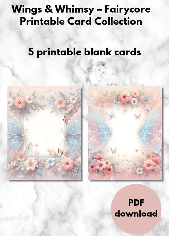 Wings & Whimsy Fairycore Printable Card Bundle - 5 Blank Digital Cards for Instant Download | DIY Greeting Cards, Journaling, Scrapbooking, Invitations - Fantasy & Cottagecore Aesthetic