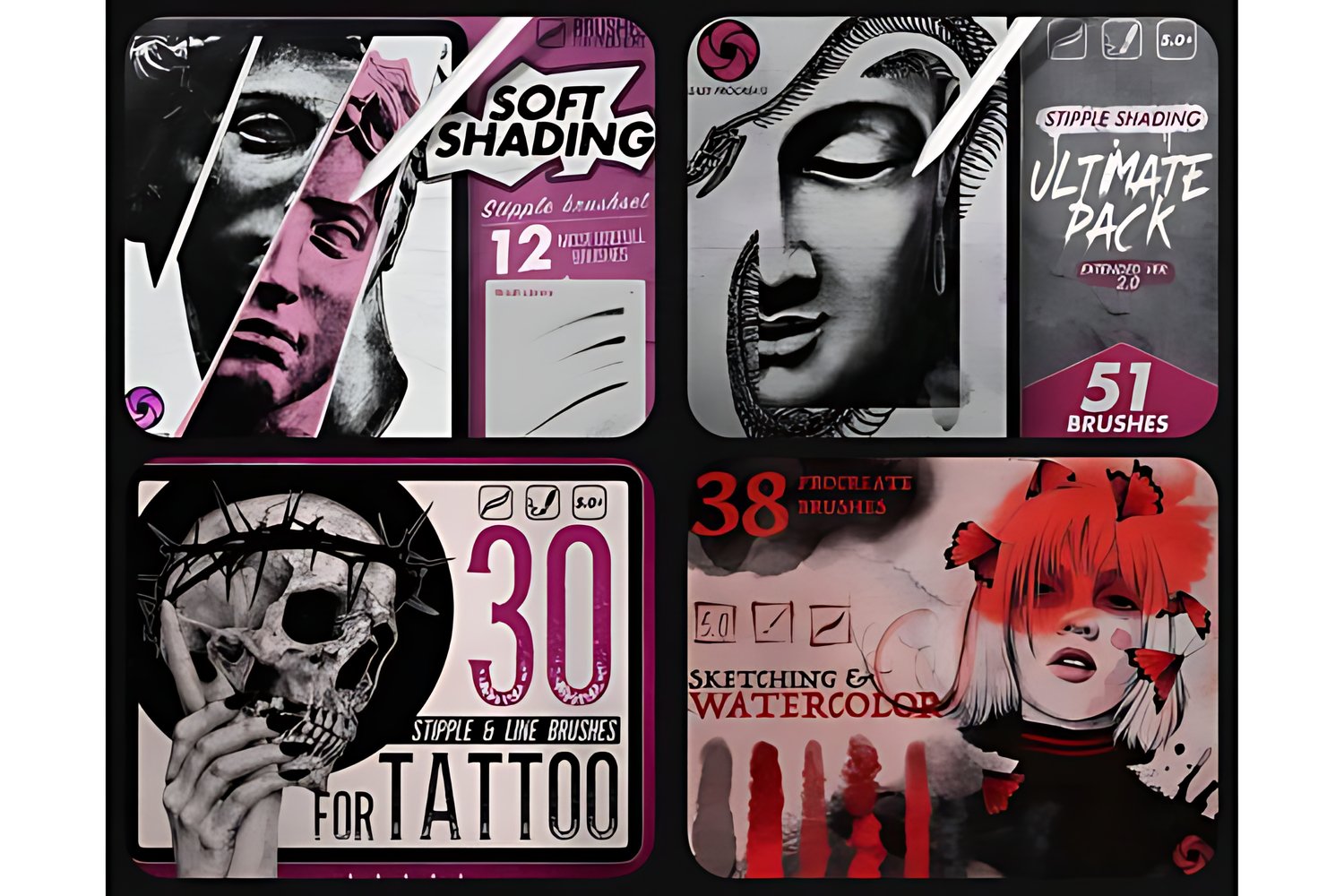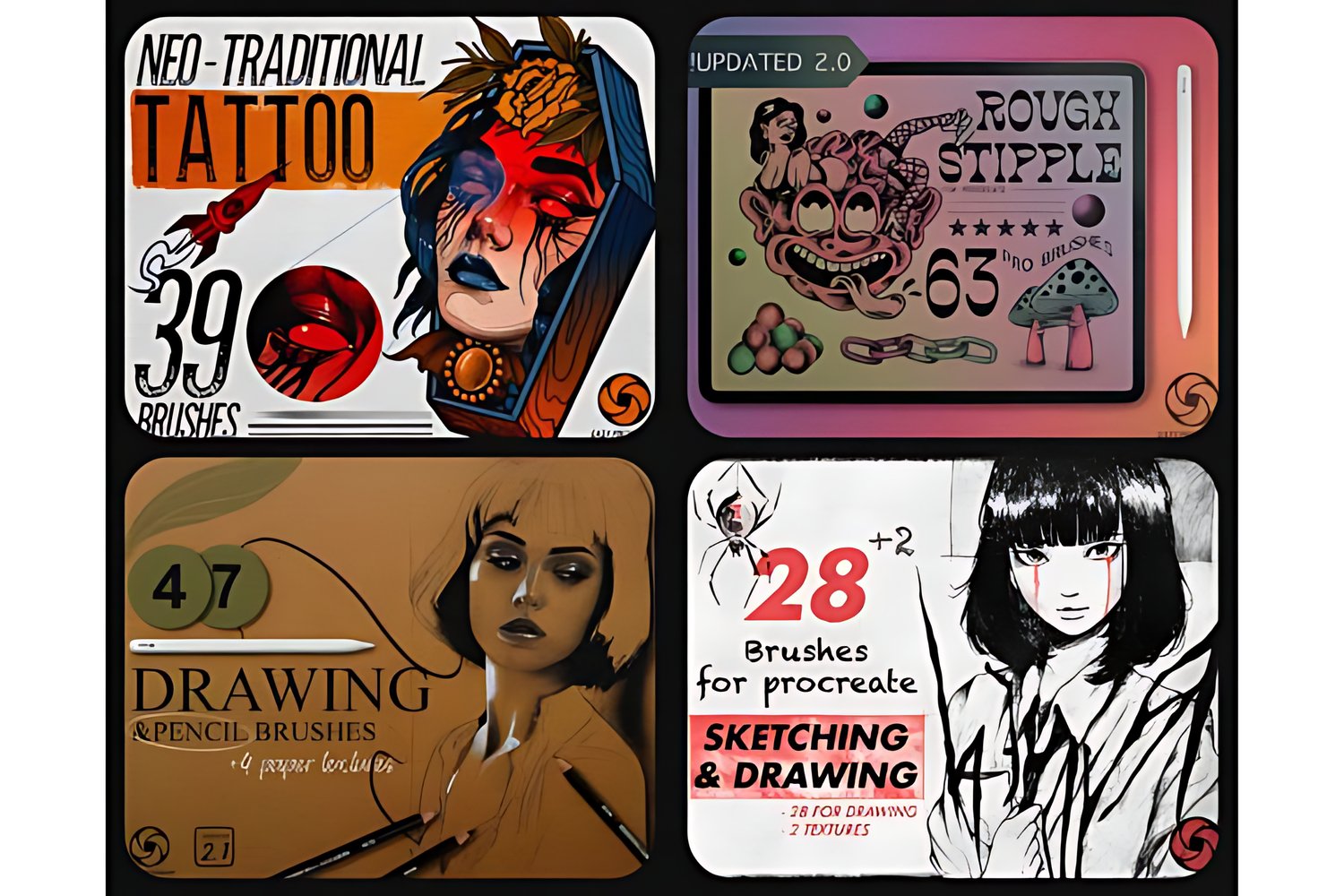 The Bundle includes 24 Procreate Brush Sets: