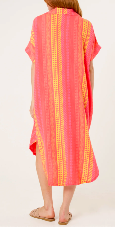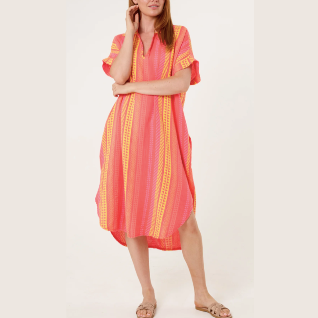 THE BELLINI STRIPE DRESS – Aztec Print Cheesecloth Collar Dress (Coral)