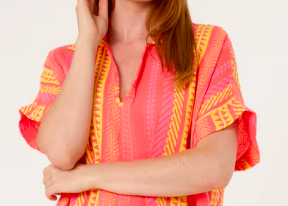 With its playful Aztec-inspired stripe print and gentle collar detail, this one-piece wonder flatters all the right places with a loose, easy fit (UK 8–16) — complete with hidden pockets (yes, really!) for that laid-back luxe feel.