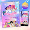 This digital bundle includes everything you need to create a fun and colorful K-pop–inspired celebration — birthday invitation, coloring page, cake topper, and favor bag label — all editable in Canva and ready to print at home.