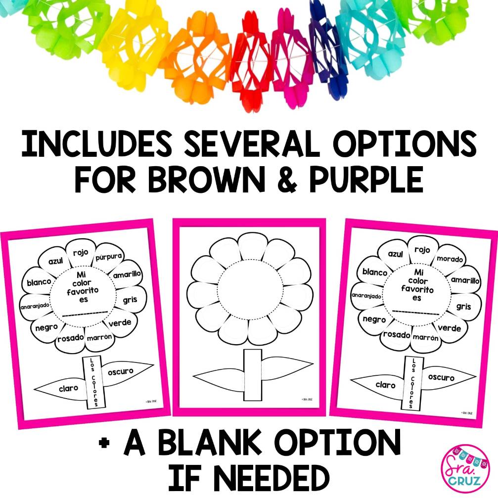 - Blank Flower, Stems & Leaves: Students can write in color words from Spanish or other languages.