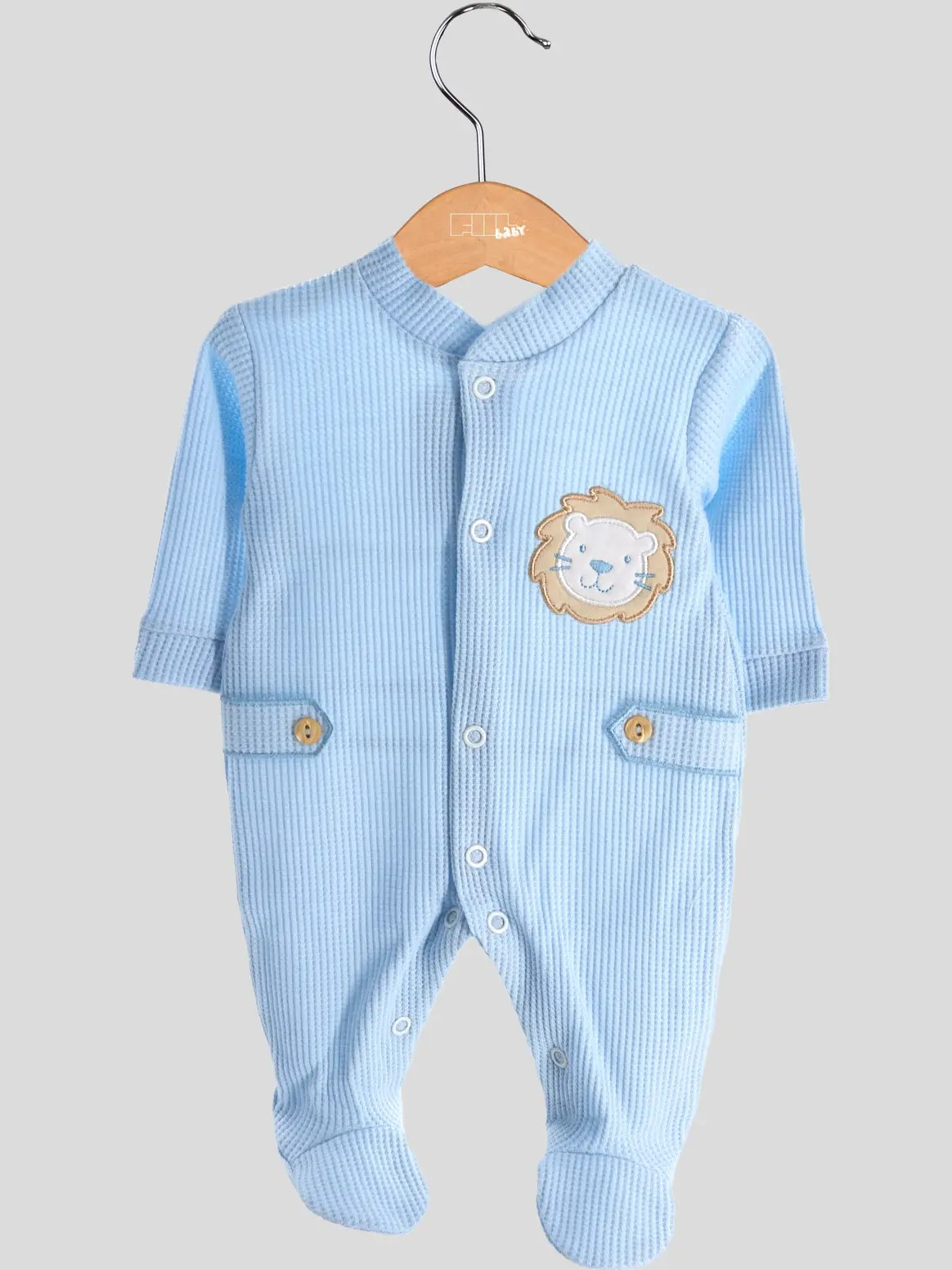 Craquez pour cette grenouillère en coton gaufré avec son adorable petit lion brodé 🦁💛.