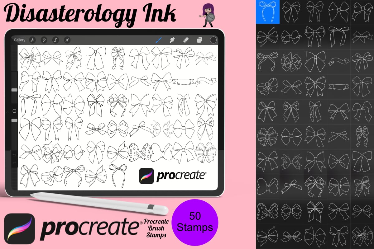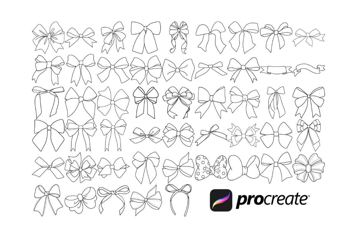 - 50 Ribbon Bow stamps for Procreate