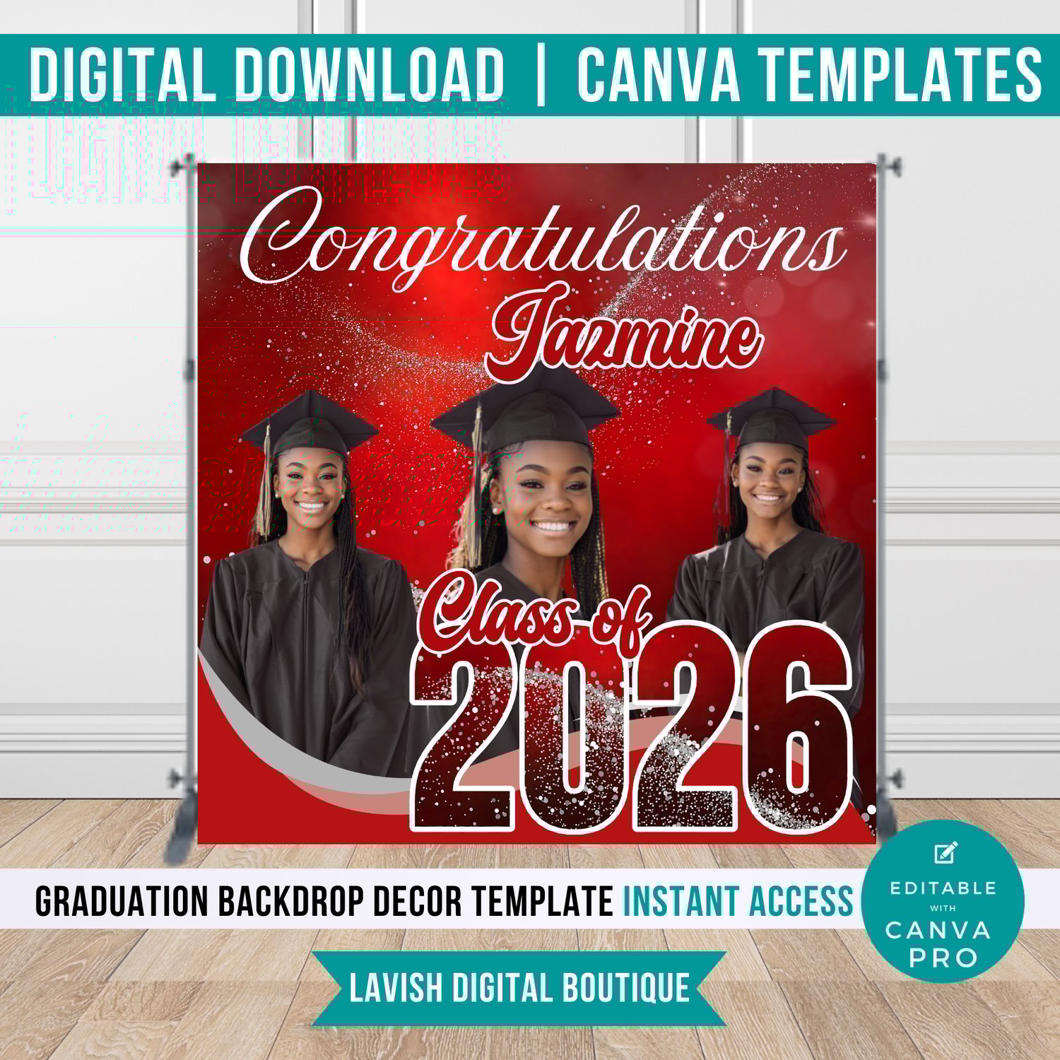 Red Editable Graduation Backdrop Canva Template | Grad Party Arch Panels | Printable Graduation Decor | Instant Download
